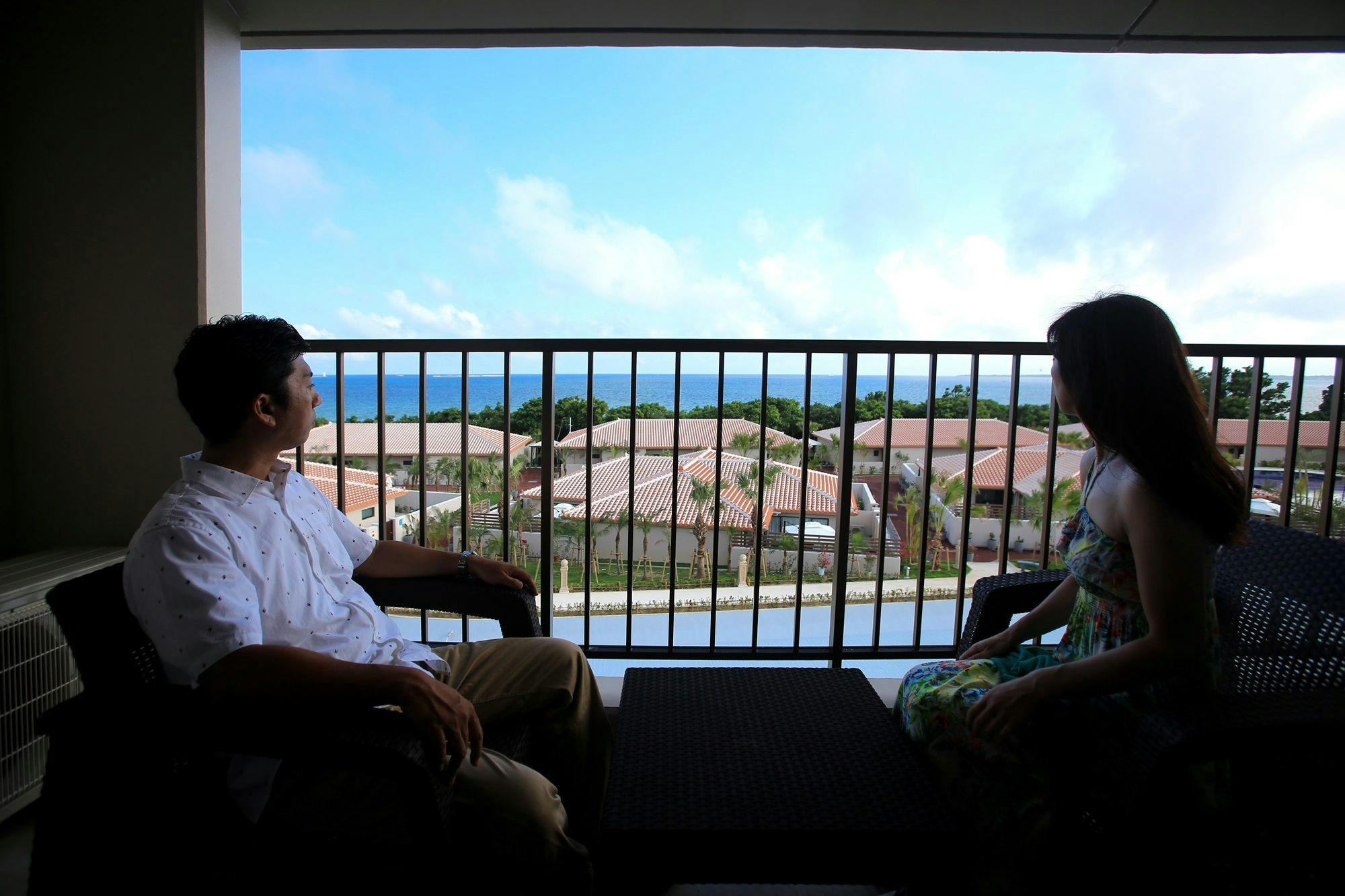 【うみかじの宿】2~3階のお部屋。バルコニーからは碧く輝く海がご覧いただけます。
