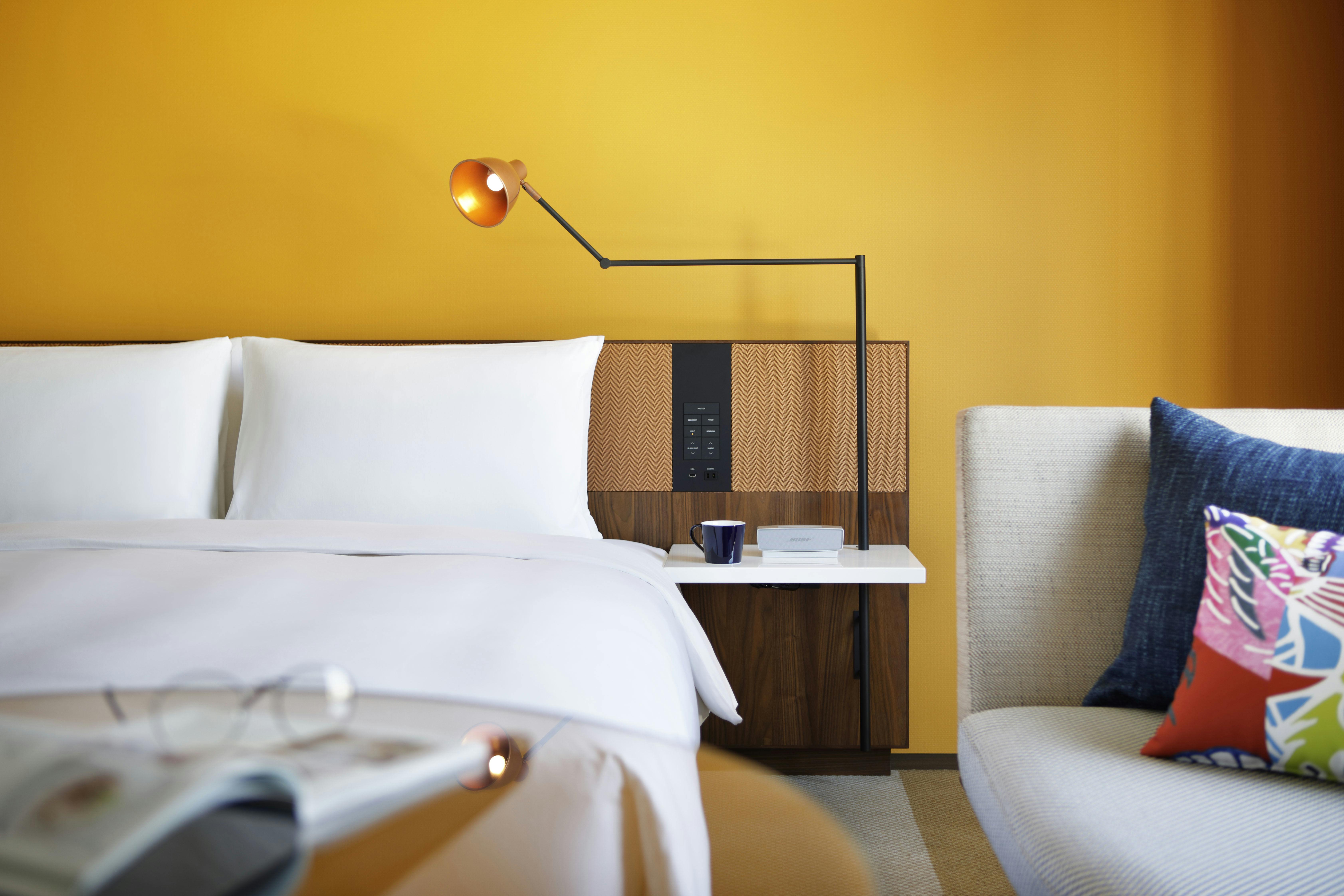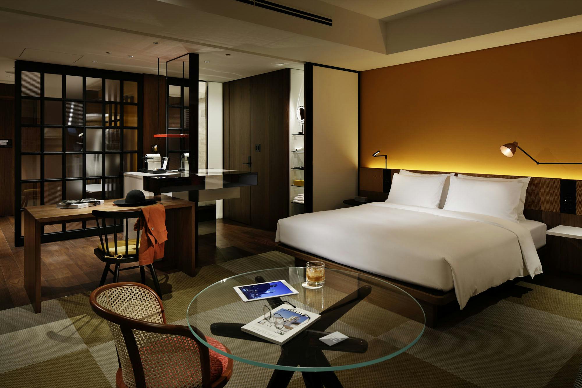 並木通りに面した47平米の開放的な空間の客室は、ゆったりとしたバスタブ、キングサイズベッドや窓側のデイベッドのほか、メイクアップ・ワーキング・ダイニングと目的に合わせて変形するマルチファンクションテーブルなど、ユニークなデザインと快適性を兼ね備えています。