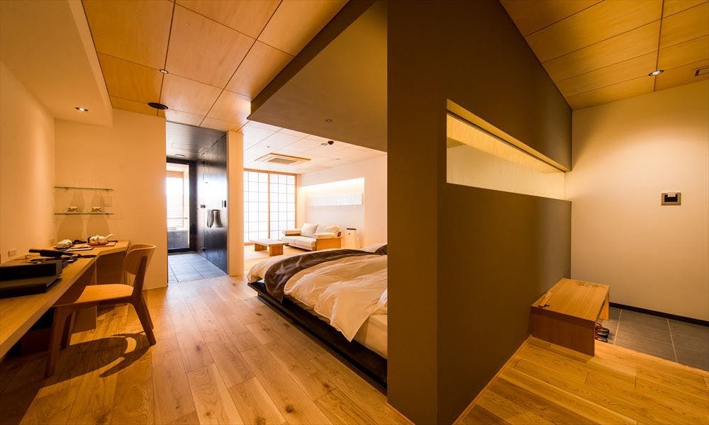 ●温泉露天風呂+和室8畳+洋室18.6平米+デッキ●禁煙室●定員2名●独立洗面台・シャワーブース付●Wi-Fi(無線LAN)無料接続可※小学生以下のお子様とのご同伴によるご宿泊はご遠慮いただいております。※喫煙は1階外の喫煙所をご利用ください。