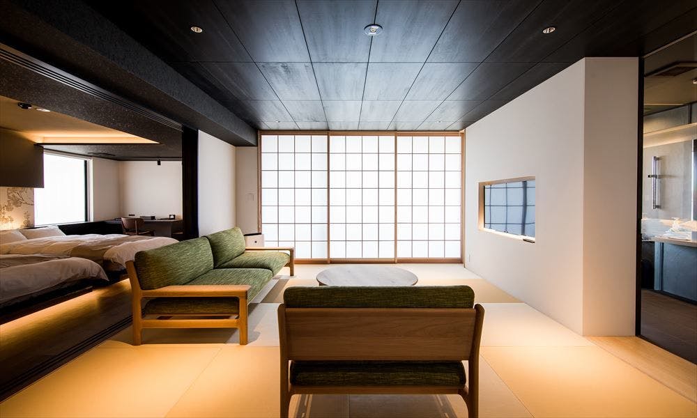 ●温泉露天風呂+和室6畳+洋室26.7平米+デッキ●禁煙室●定員4名●独立洗面台・シャワーブース付●Wi-Fi(無線LAN)無料接続可※小学生以下のお子様とのご同伴によるご宿泊はご遠慮いただいております。※喫煙は1階外の喫煙所をご利用ください。