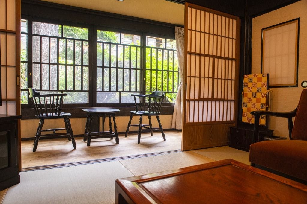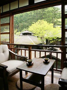 全室法師川が望めます。お部屋は重厚な広めなお部屋です。