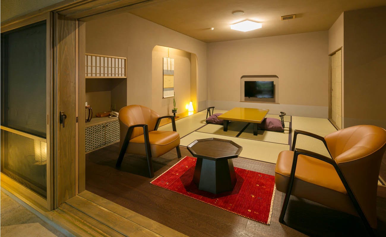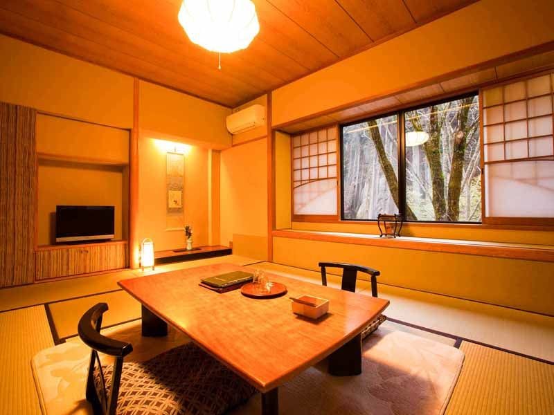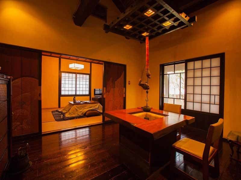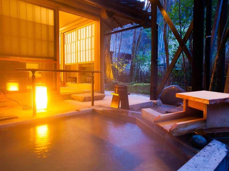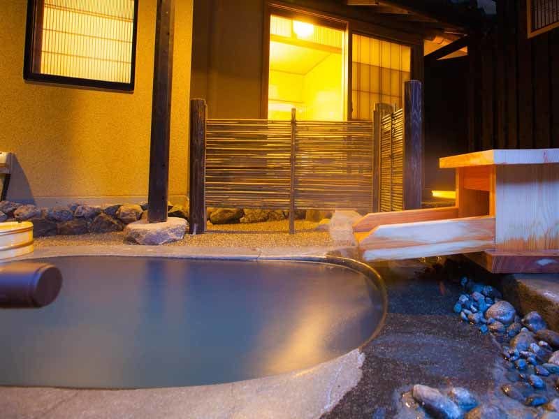 天然温泉の内風呂、露天風呂付き。お部屋も囲炉裏と畳の2間で、当館の最もハイクラスな客室タイプです。静かで贅沢な時間をお過ごし下さい。