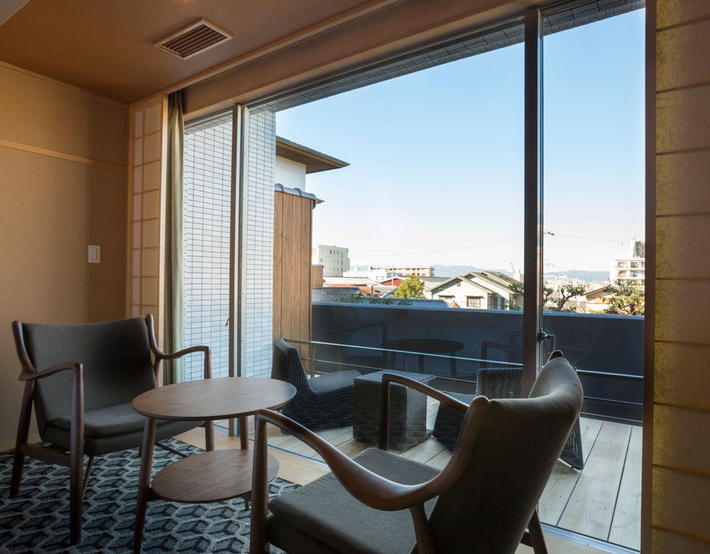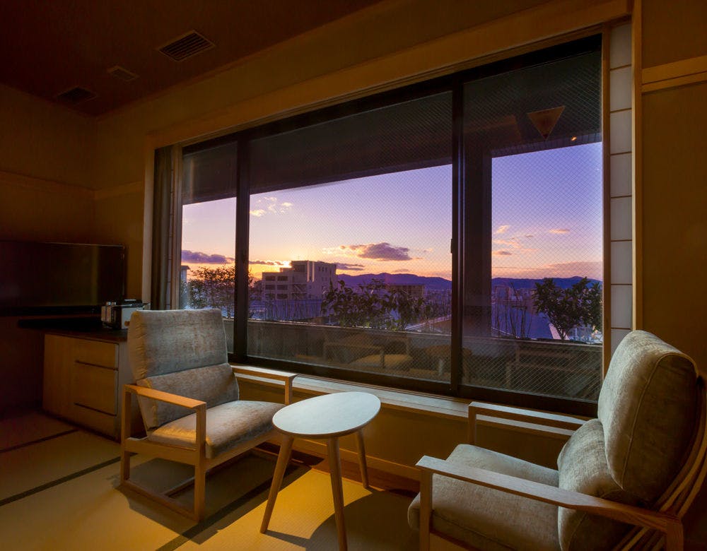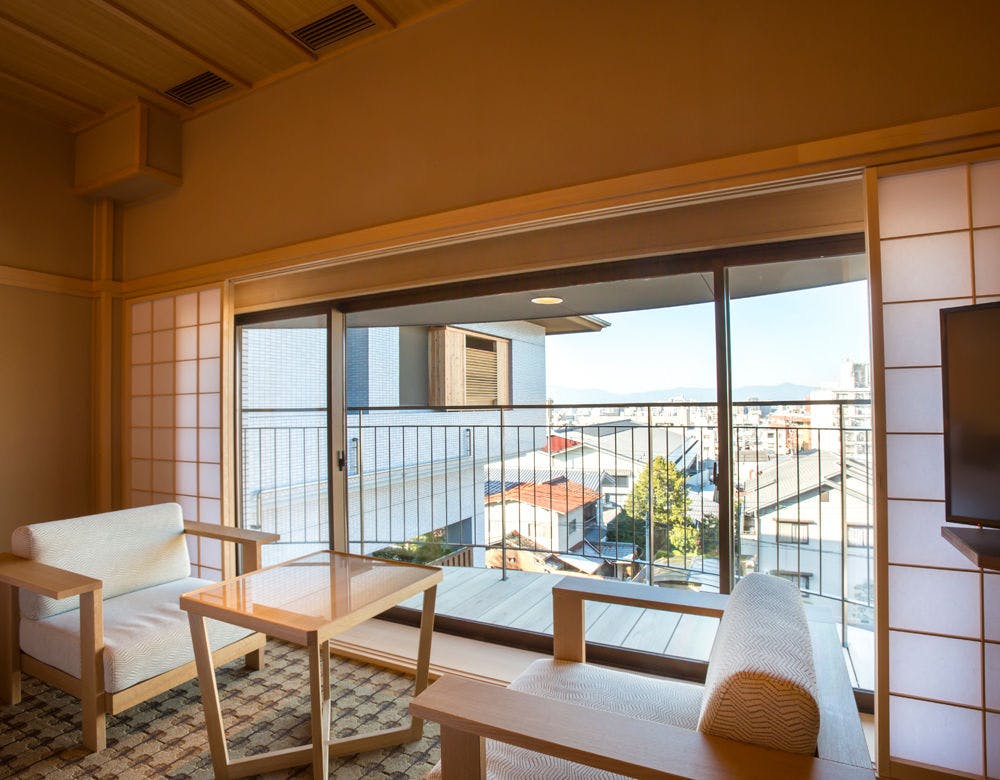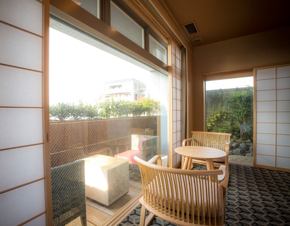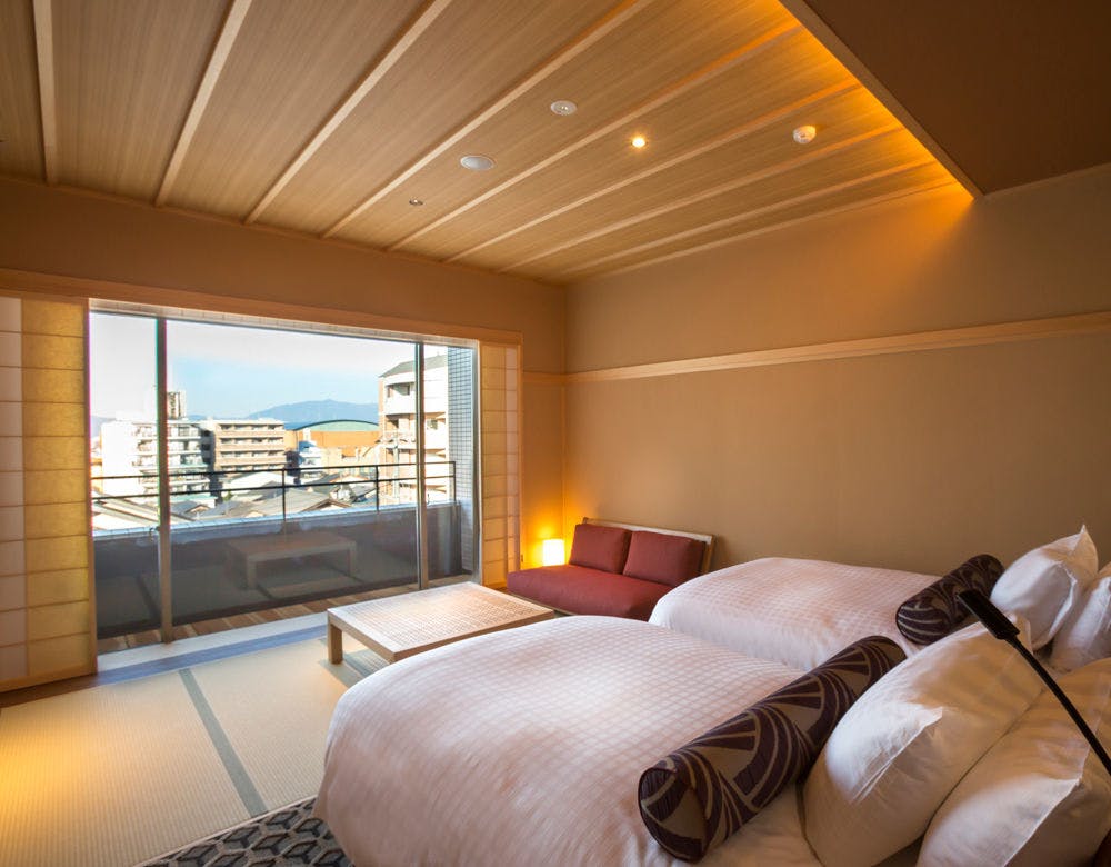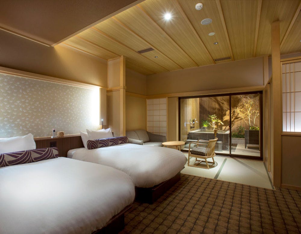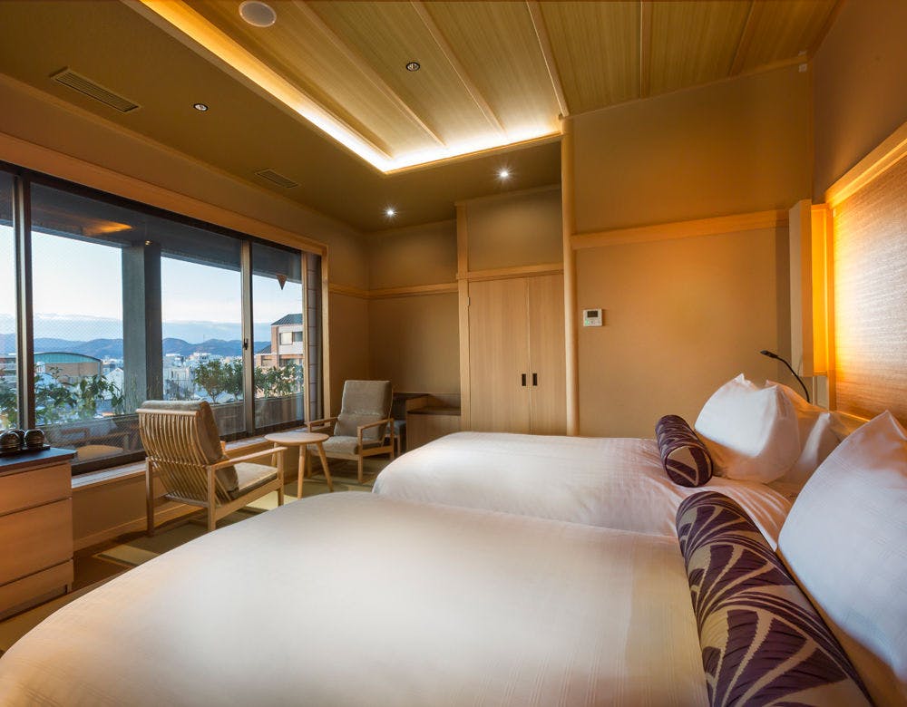 ■半露天風呂付、畳リビングから町並みを臨む約35平米の和風ツインルーム