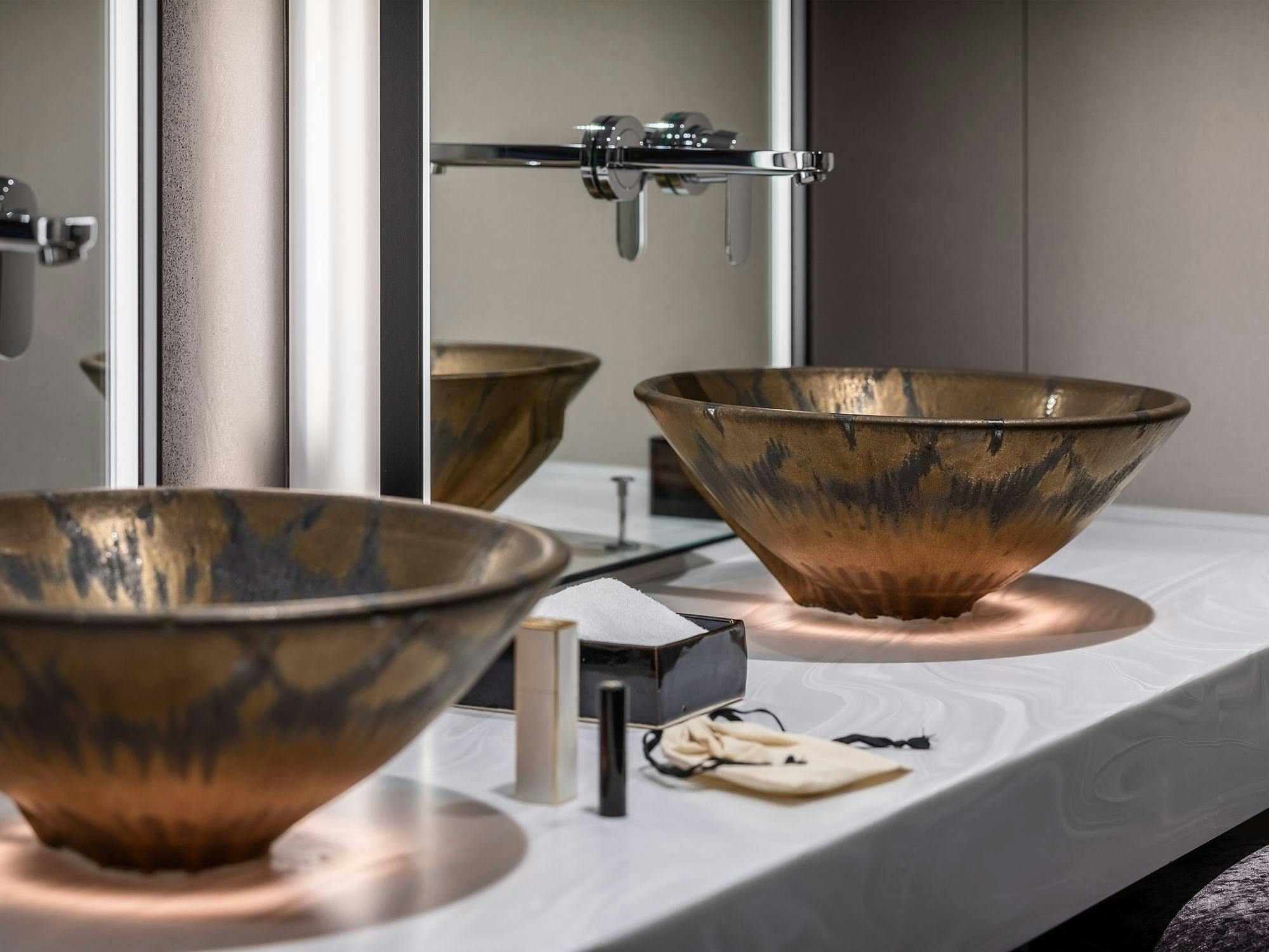 独立したベッドルームとリビングルームが広がる55平米超のラグジュアリーな空間。ワイドサイズのベッドやソファ、ダブルベーシンの洗面室など、行き届いた快適性でVIPにもお応えします。