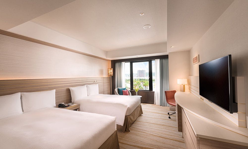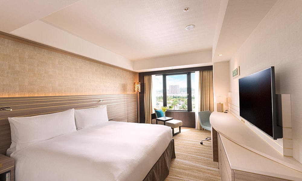 【洗い場付きバスルーム/ベッド180cm】アメリカンビレッジの煌びやかなナイト風景をご覧いただける客室※3名利用時は追加ベッド
