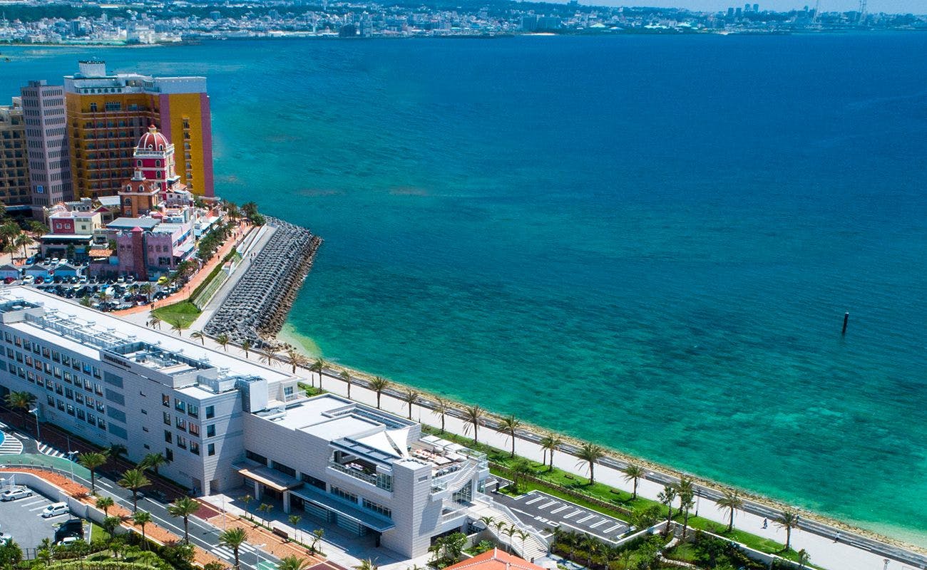 那覇空港から車で約40分。オーシャンフロント&美浜アメリカンビレッジに隣接。 那覇市内・北部へもアクセスが便利なロケーション。ビーチや美浜アメリカンビレッジ徒歩圏内。絶景ルーフトップバー&2つのプール