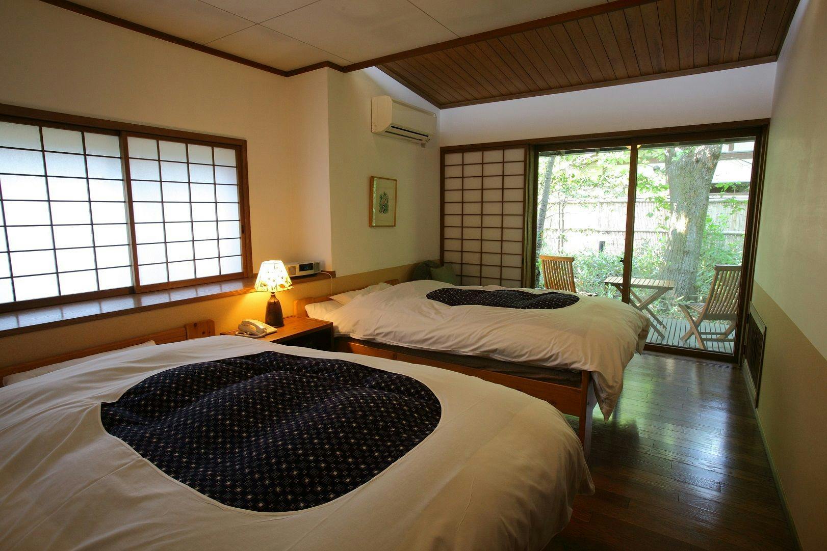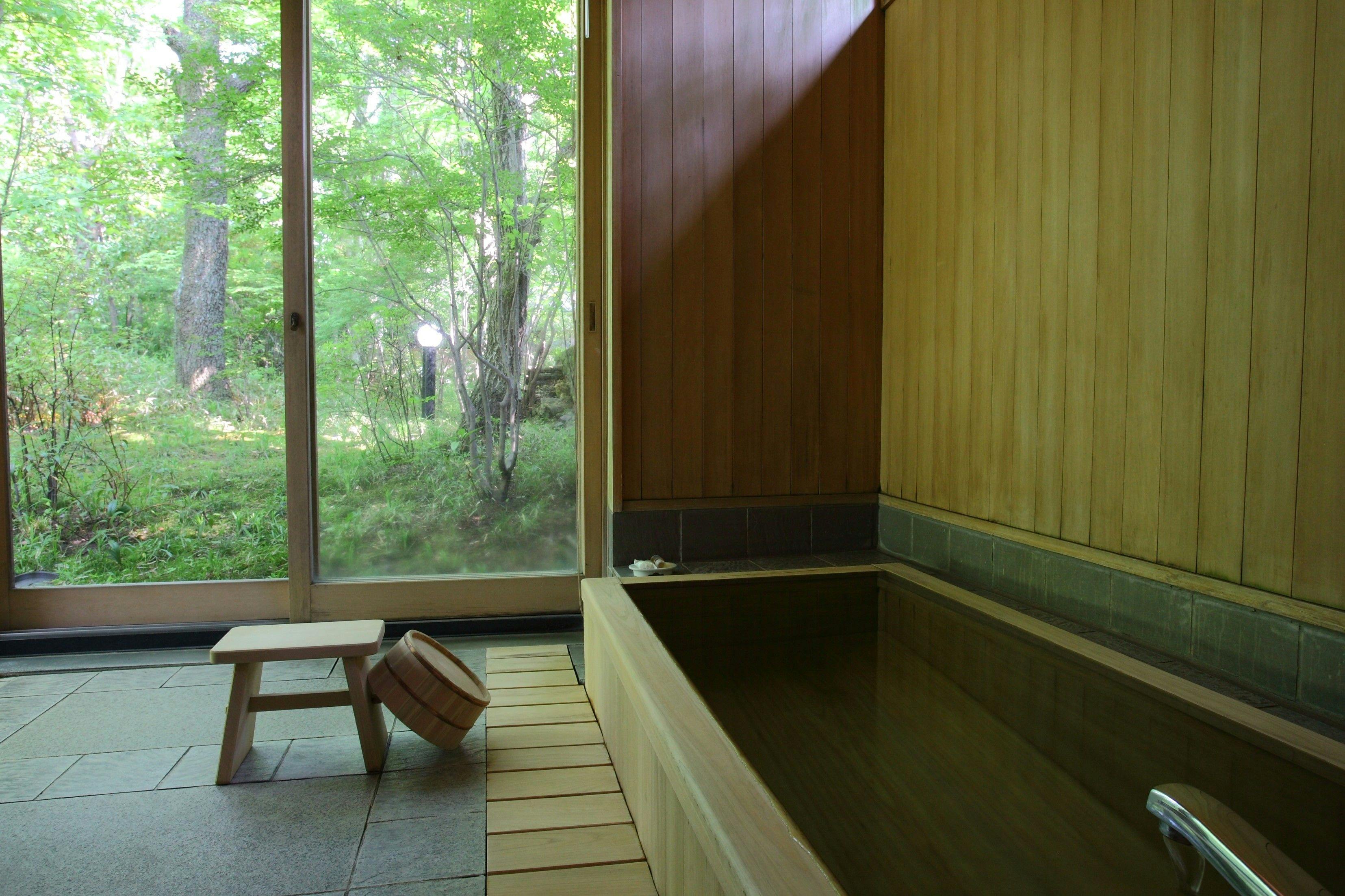 昭和28年、禅寺の保養所としてスタートした由布院玉の湯は、雑木林の中に小さな木の家が点在しています。