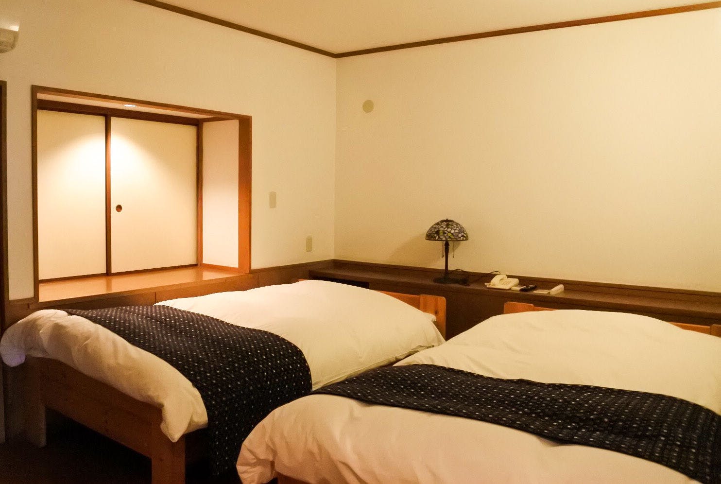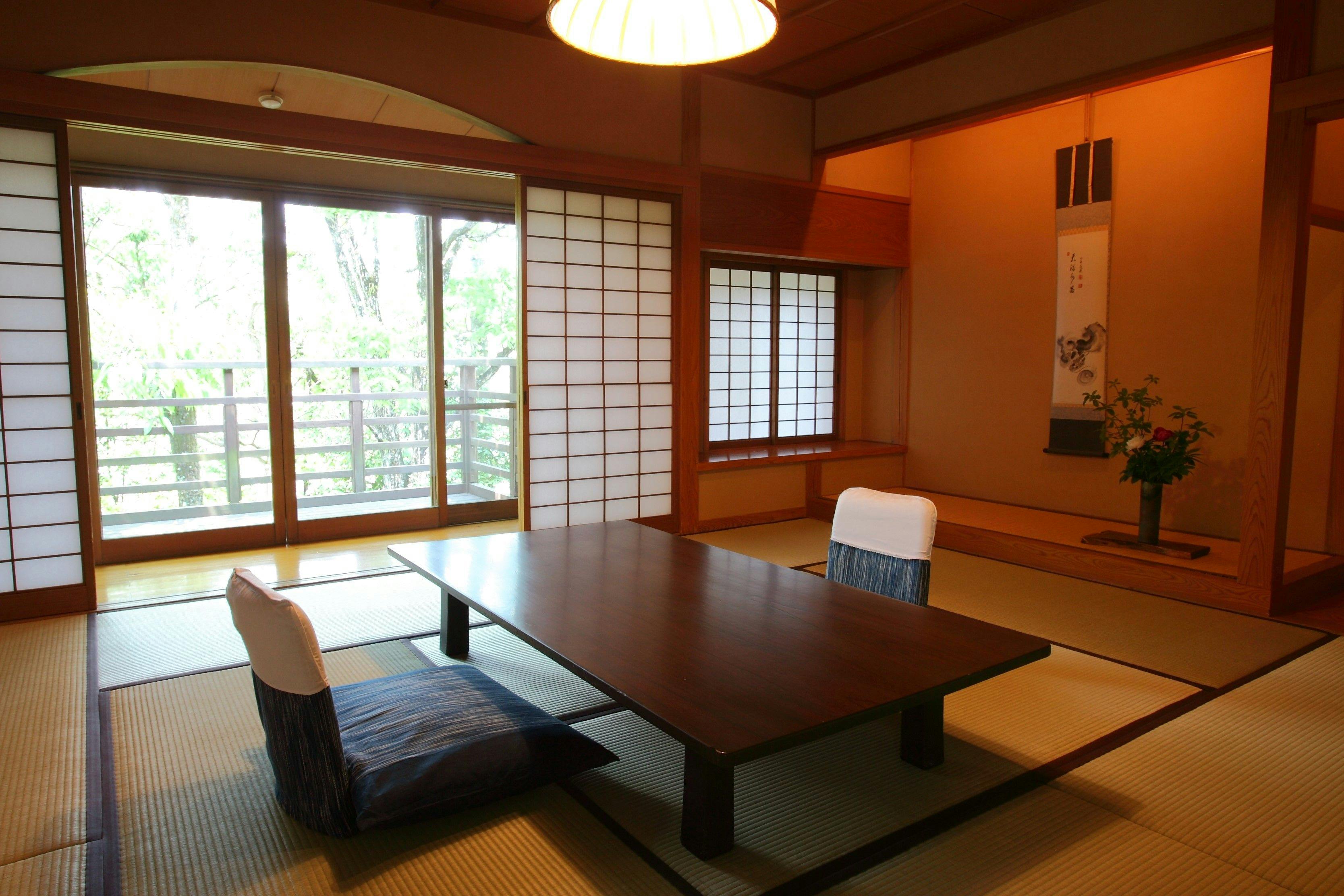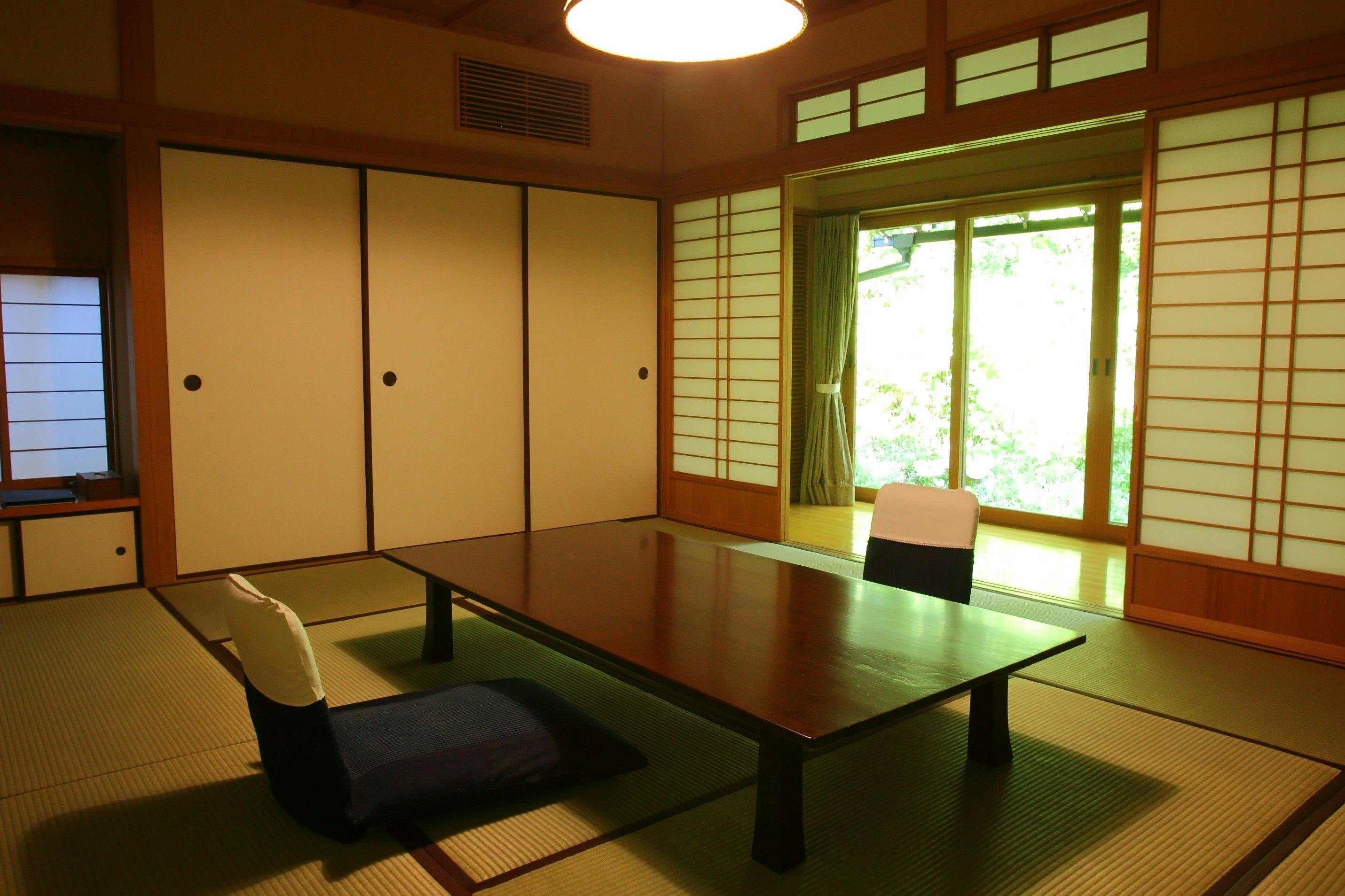 こちらの「くいな」のお部屋はB棟の2階にございます、和室10畳+洋寝室12畳に10畳のリビングルームがついた当館で一番広い140平米のお部屋でございます。