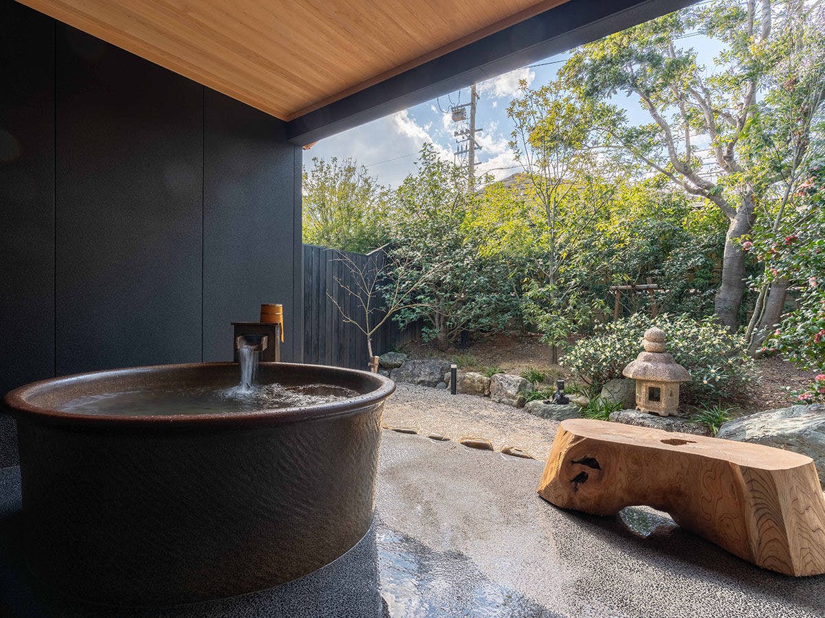 伊勢神宮に車で朝参拝ができる立地。限定5室の戸建て客室には、榊原温泉を堪能できる露天風呂も。
