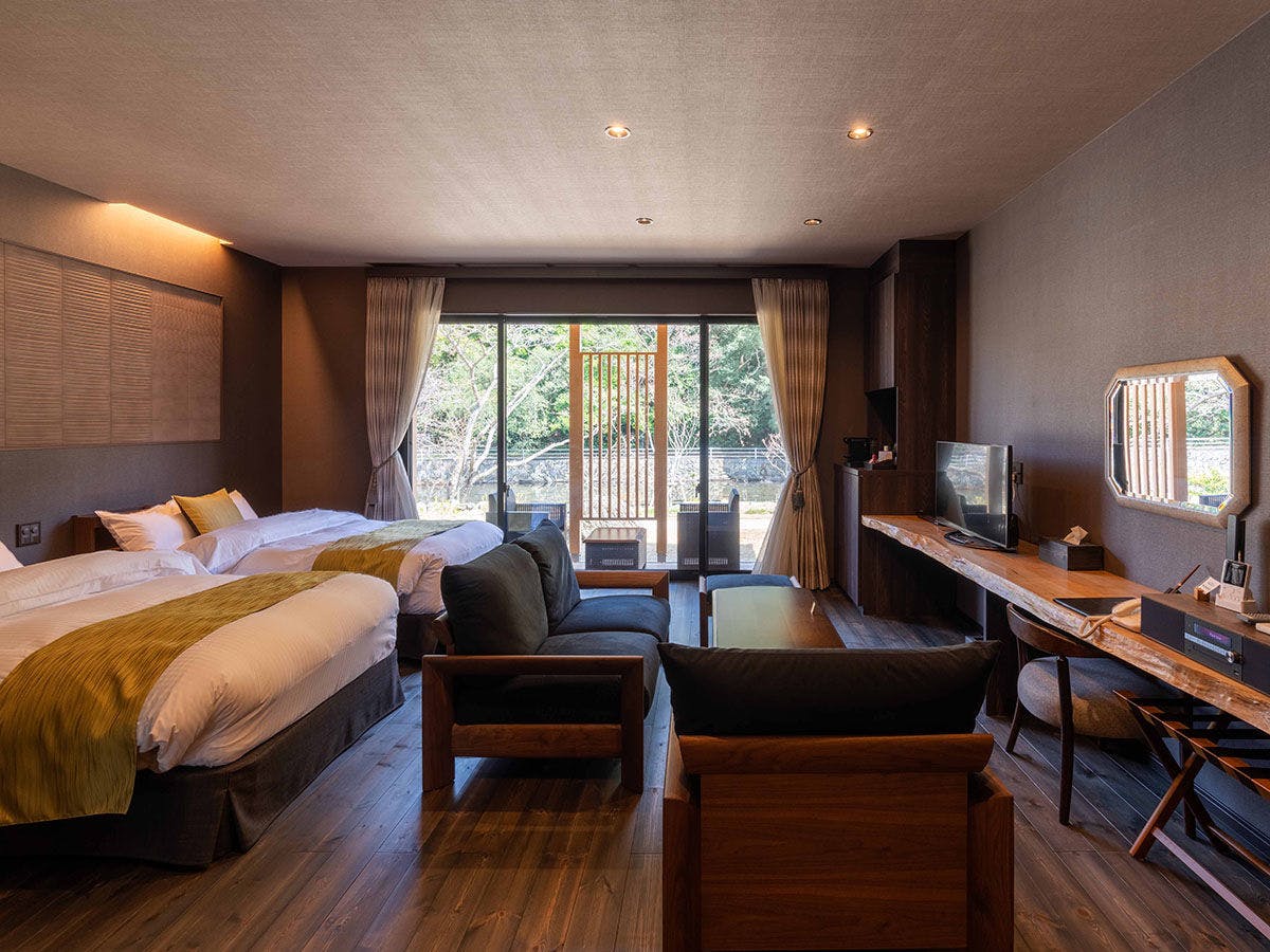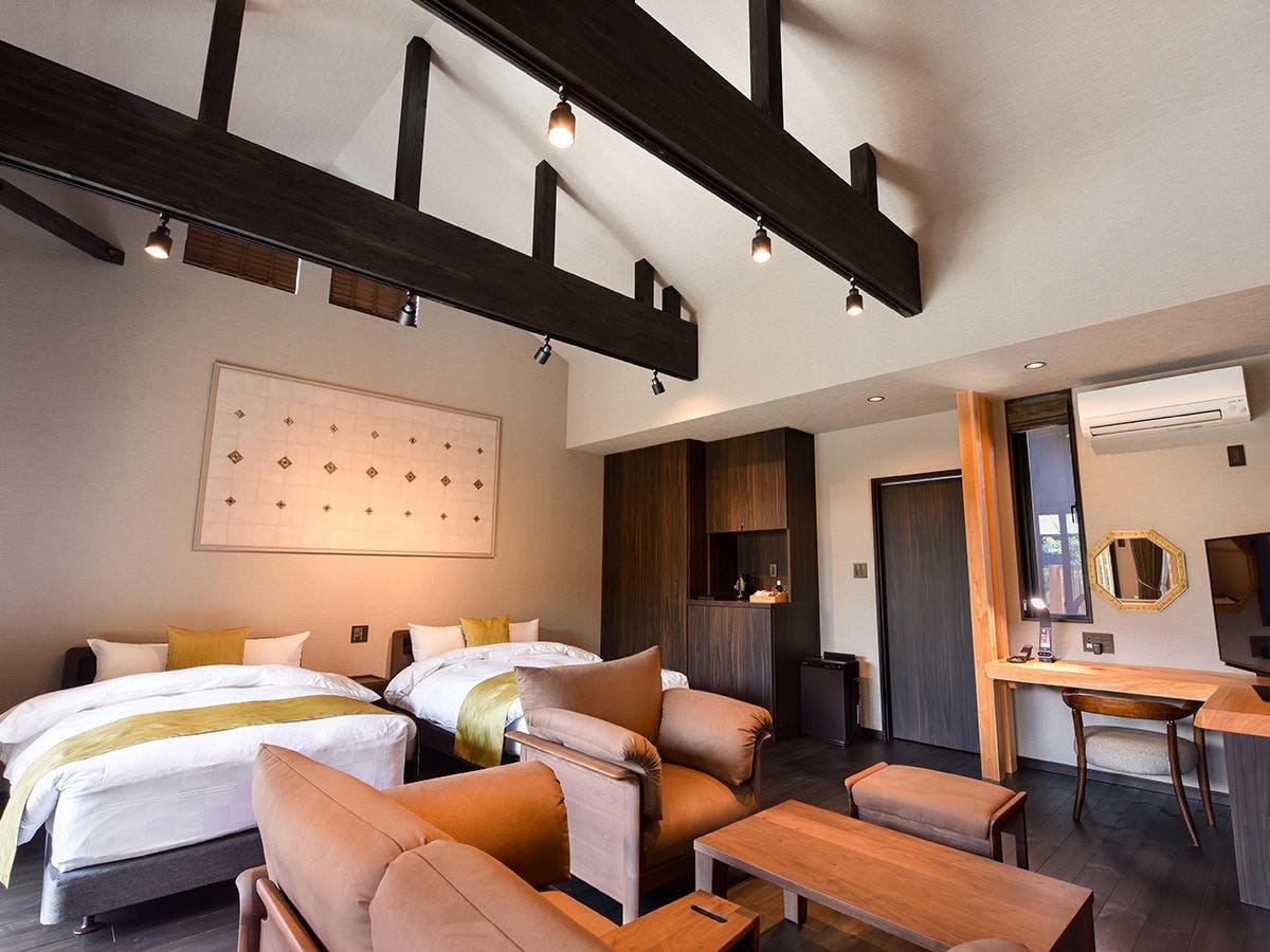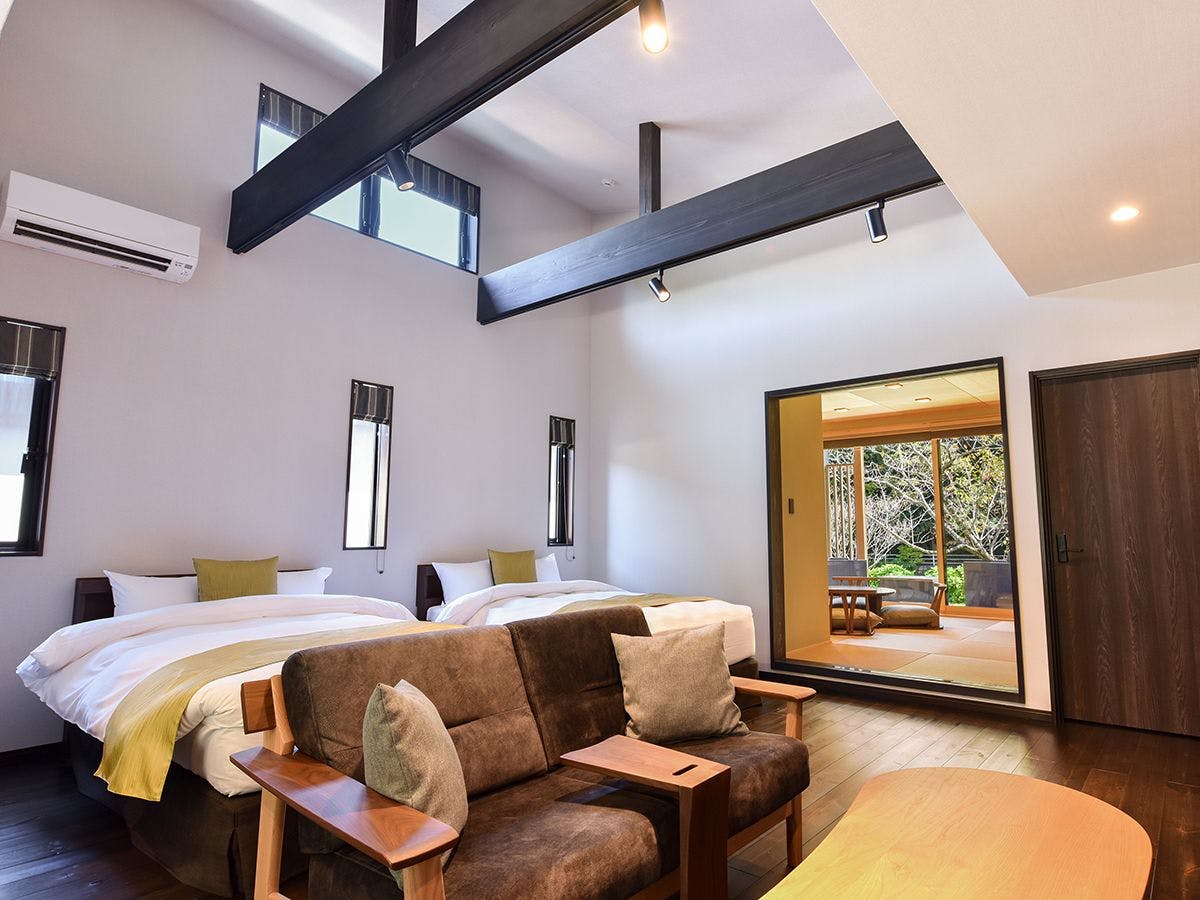 快適さを大切にした客室は、木のぬくもりを感じるツインベッドルームと、井草の香る寛ぎの和室。