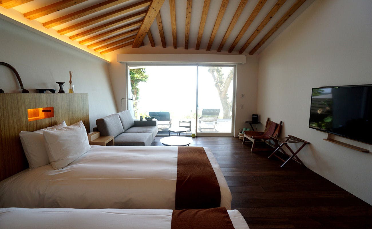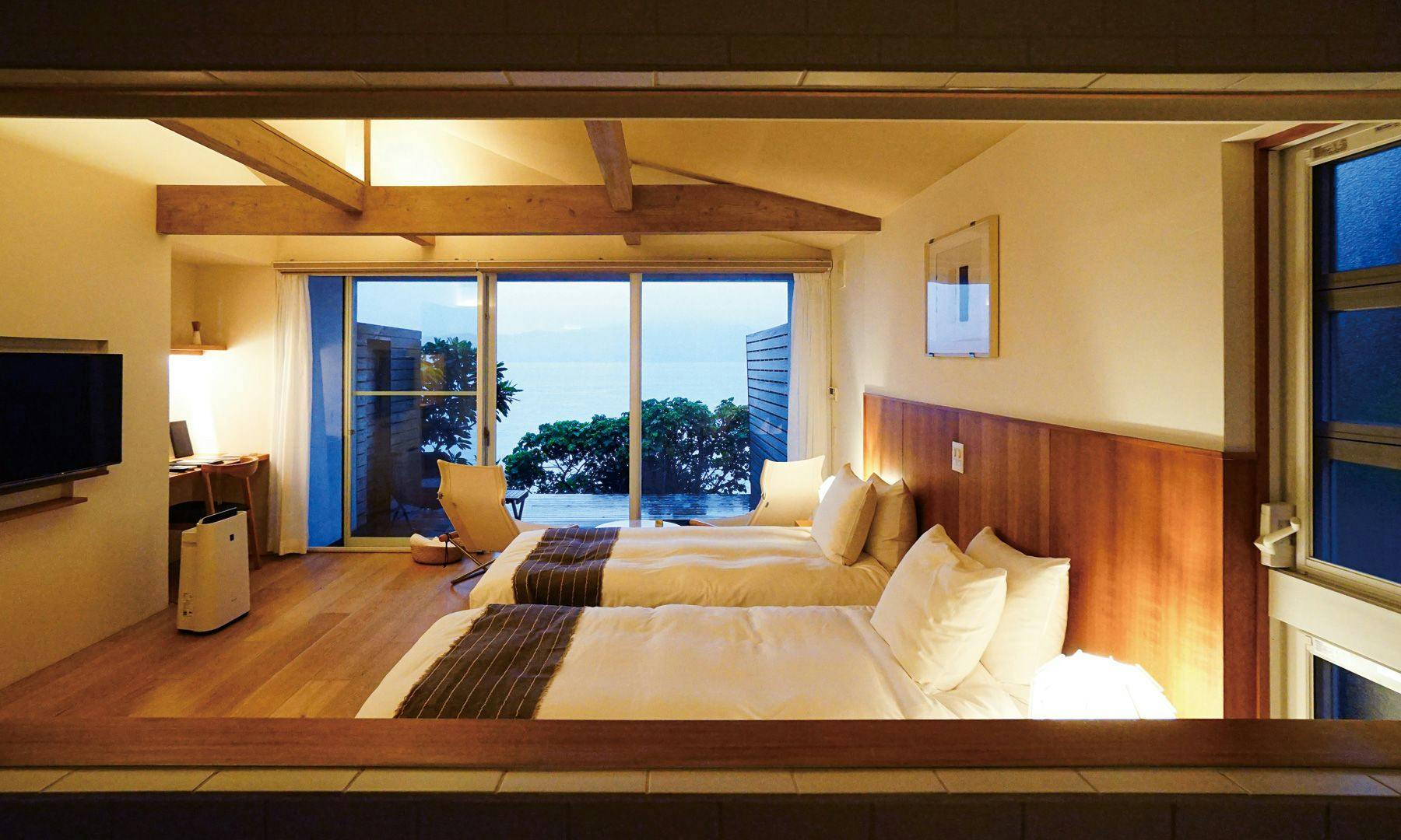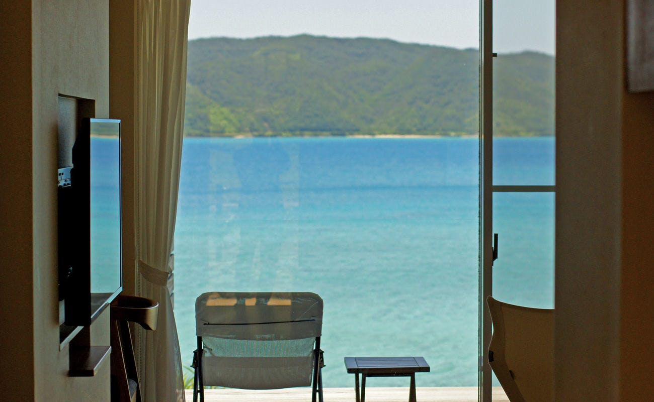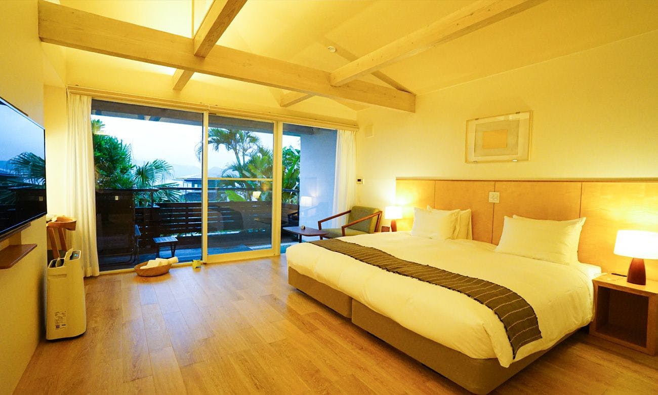 丘側からのオーシャンビュールーム(37平米/定員1~3名)。