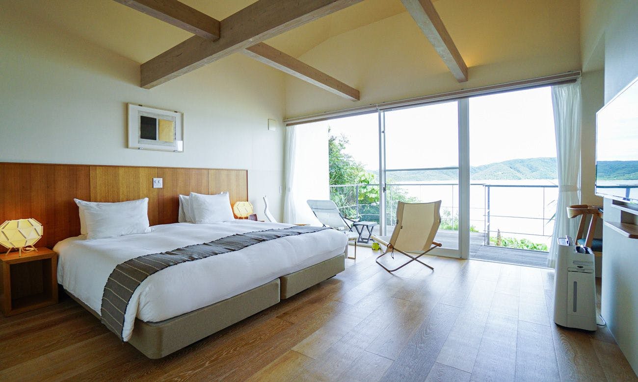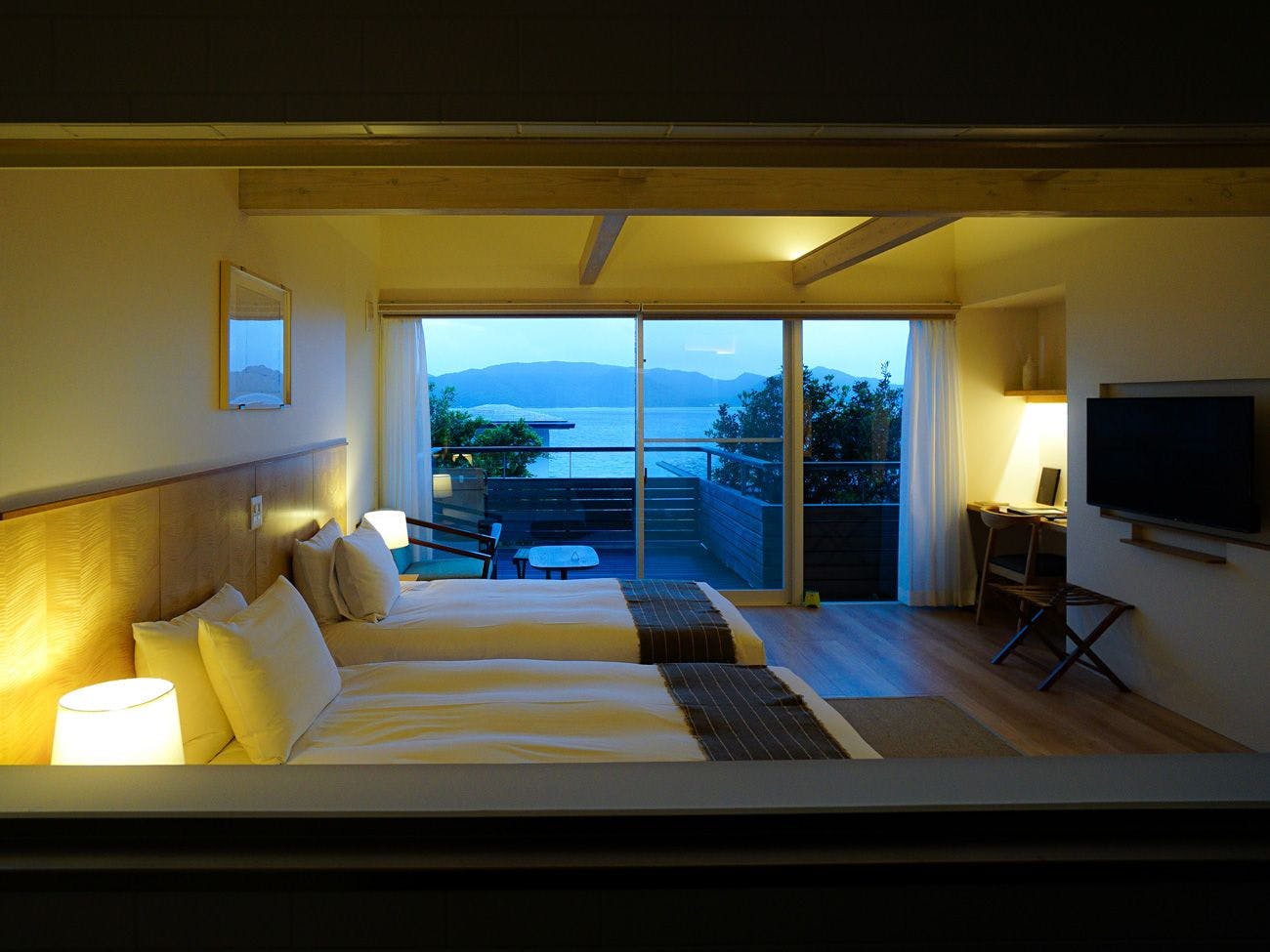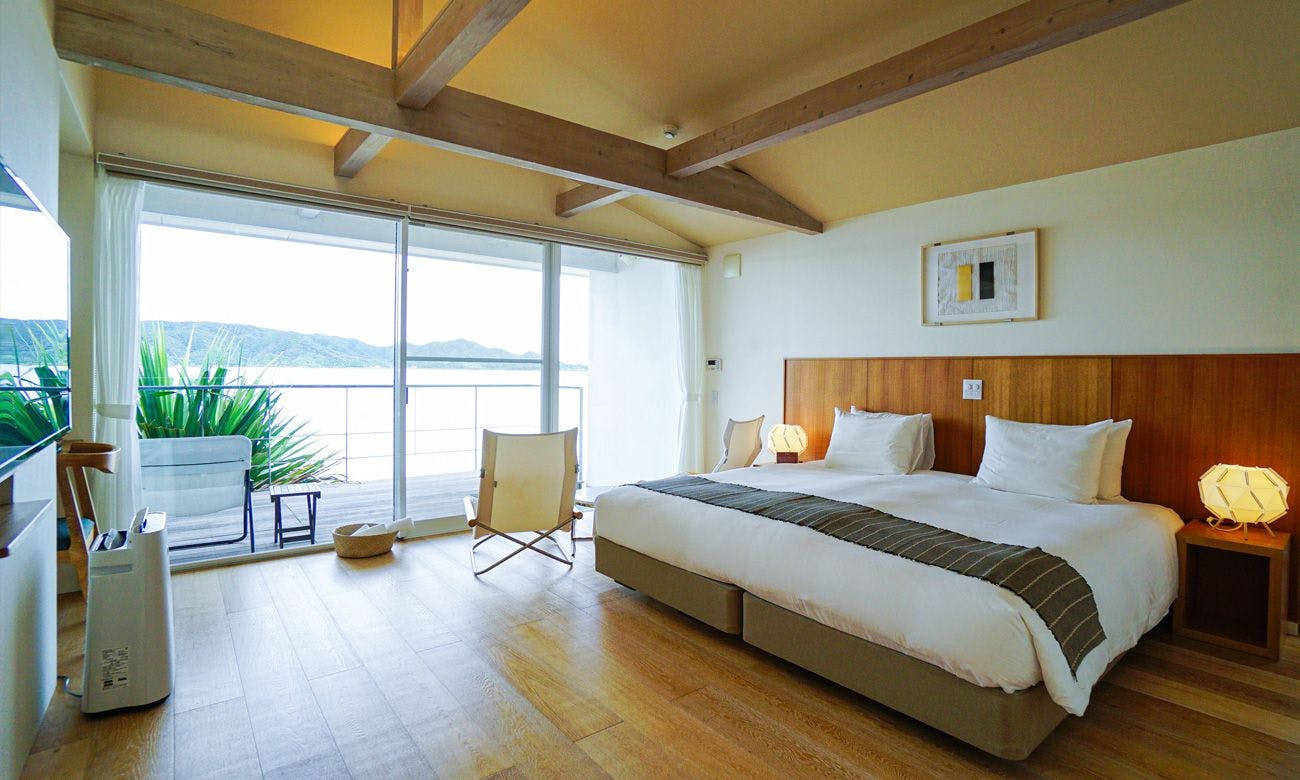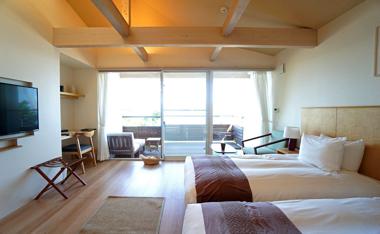 丘側からのオーシャンビュールーム(37平米/定員1~3名)。