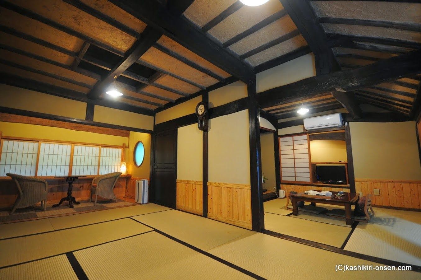 茅葺屋根の離れタイプ。床暖や冷暖房を完備したお風呂リビング付です。