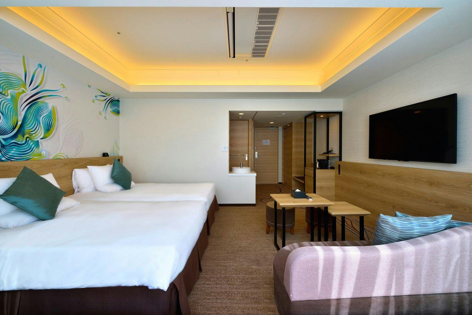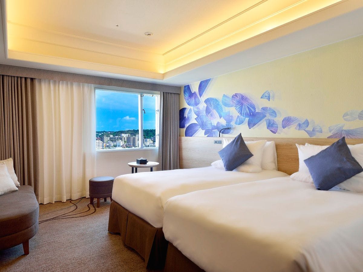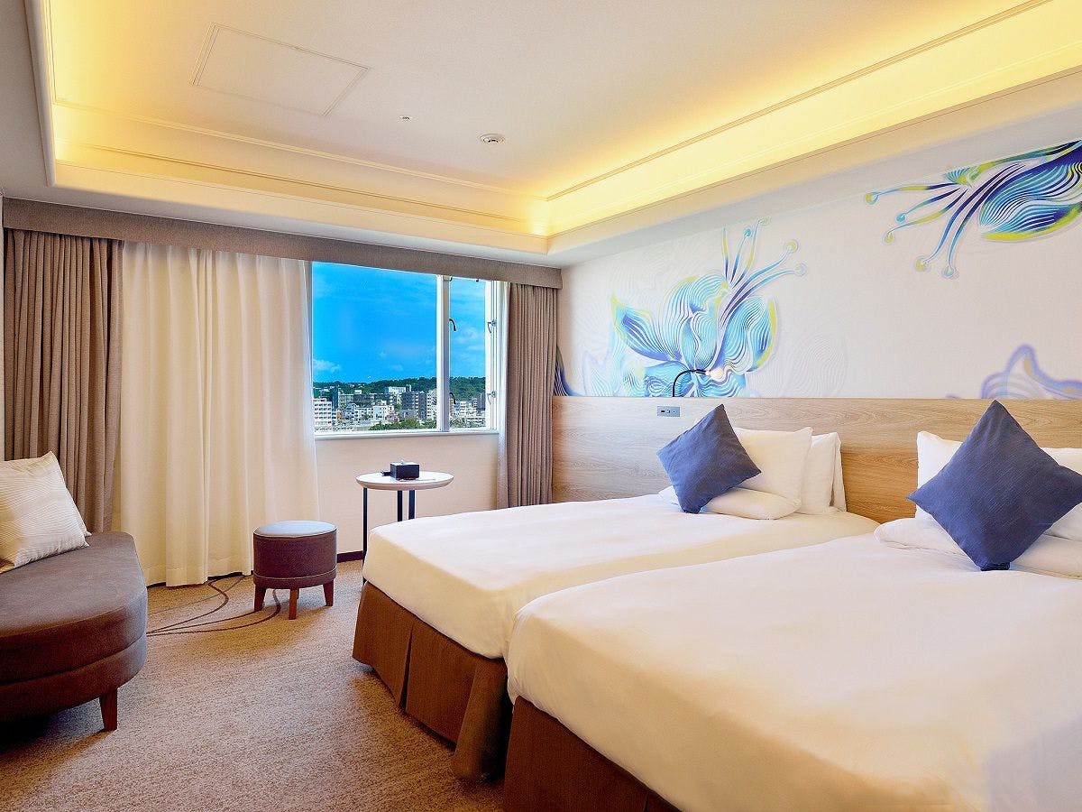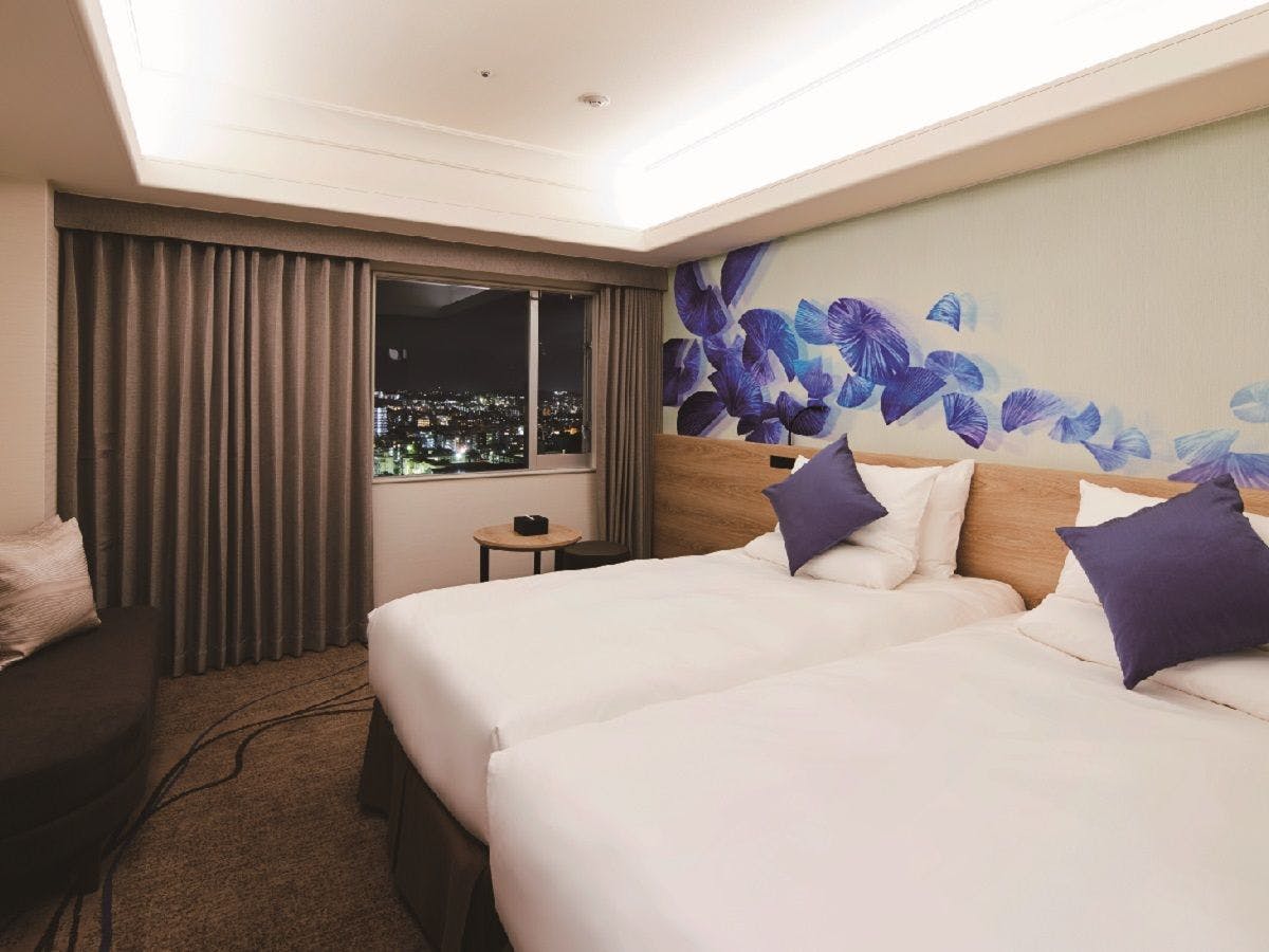 【最上階プレミアラウンジを無料でご利用頂けます】○ 全室無料Wi-Fi ○<広 さ>34平米<ベッド>シモンズ社製<サイズ>幅120センチ×縦203センチ×2台 ※3名様以上でのご利用の場合スタッキングベッドをご用意致します。<バスルーム>バス・トイレセパレート、洗い場付