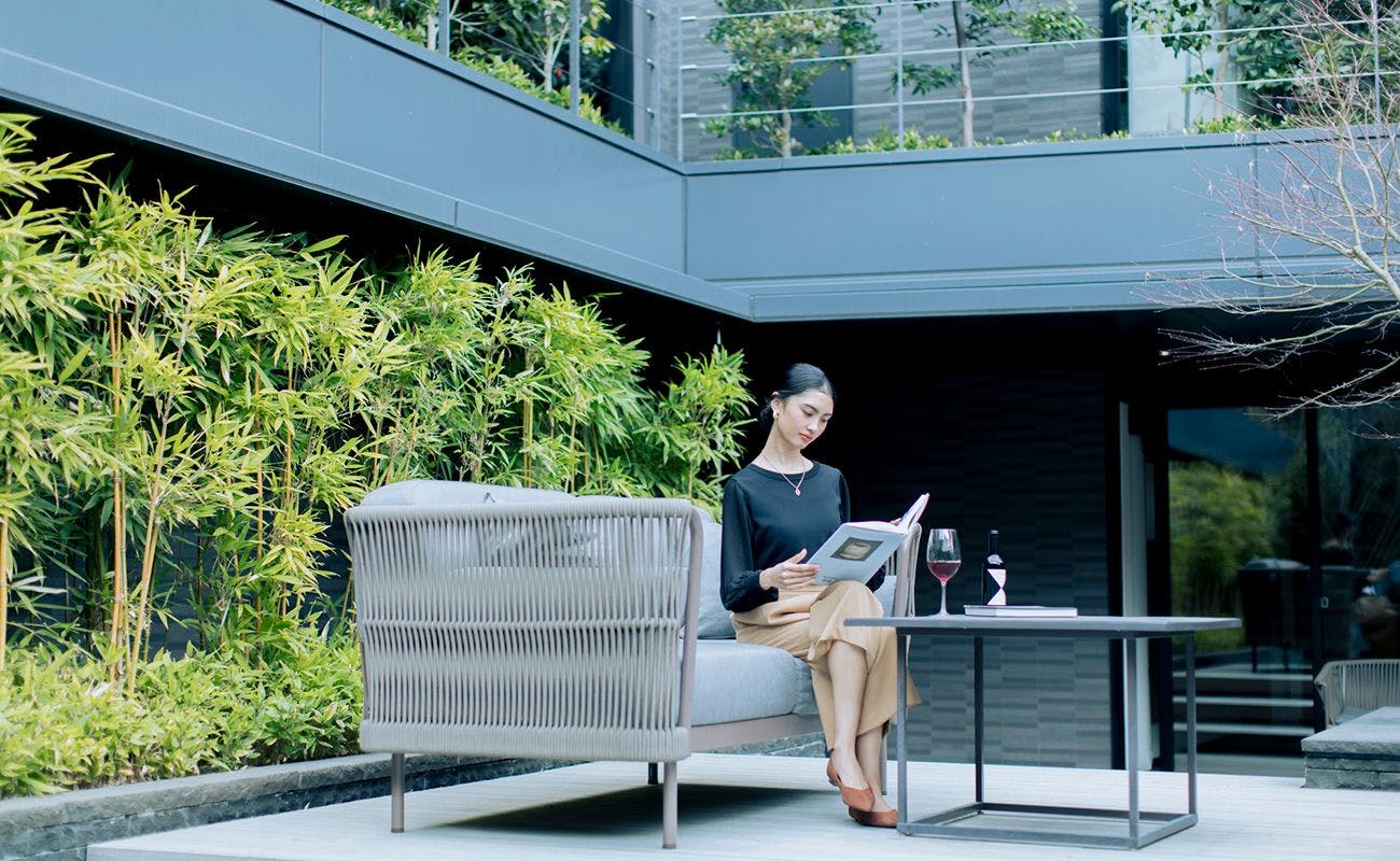 客室専用の庭園をのぞむ、開放感あるテラス。