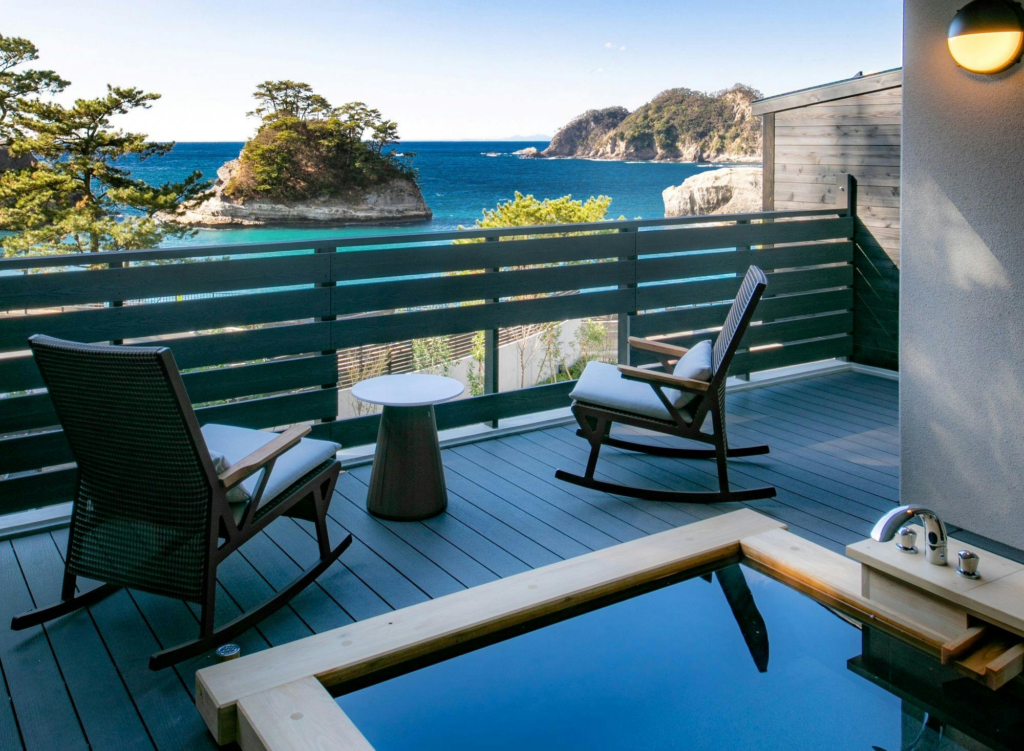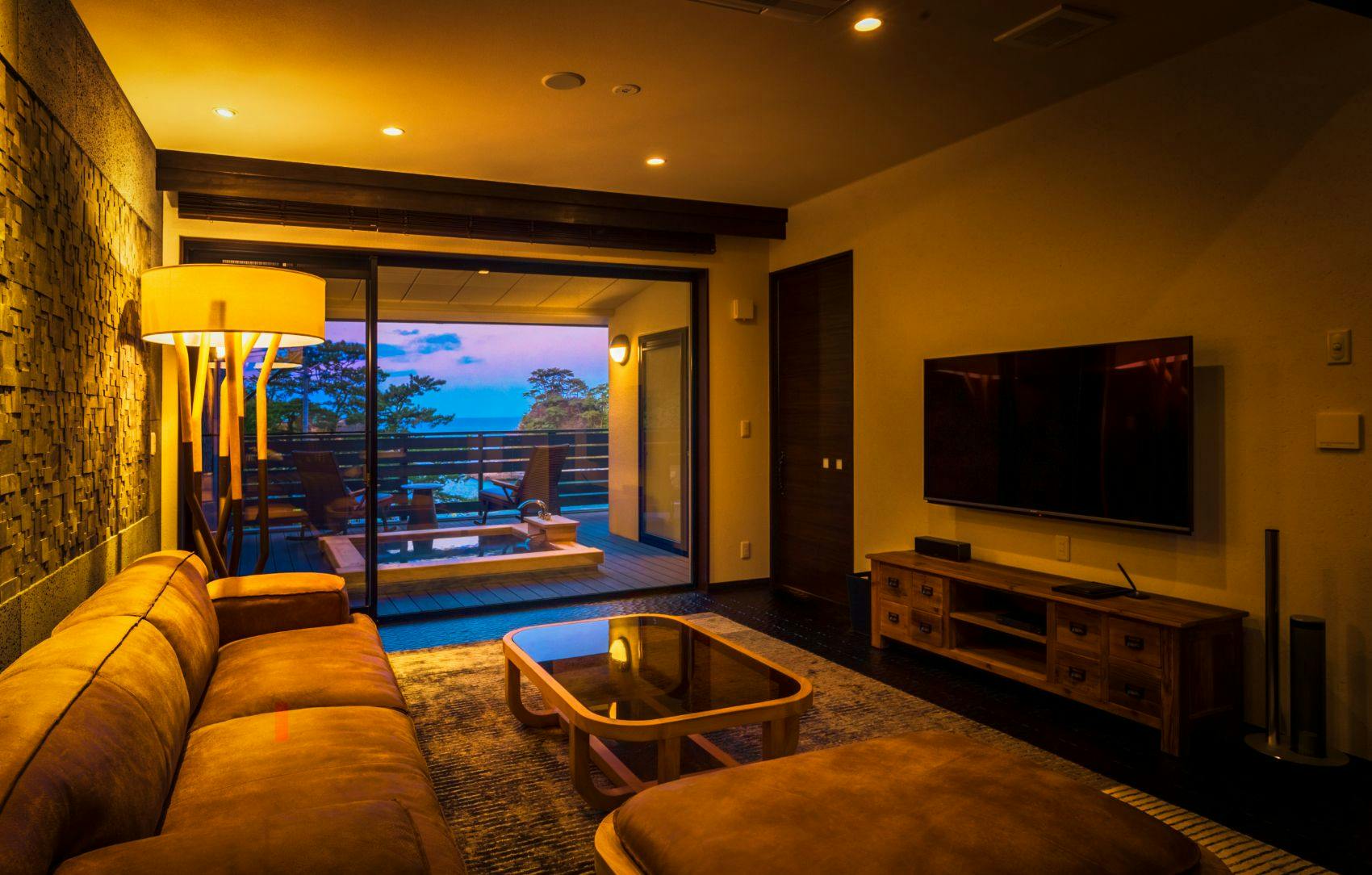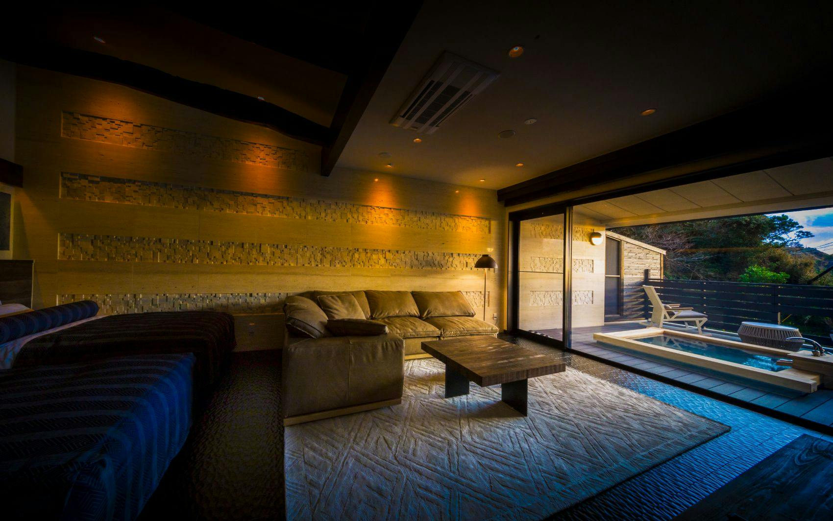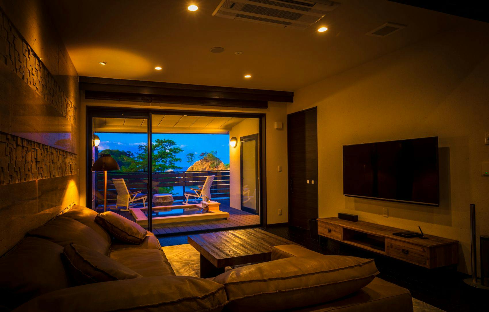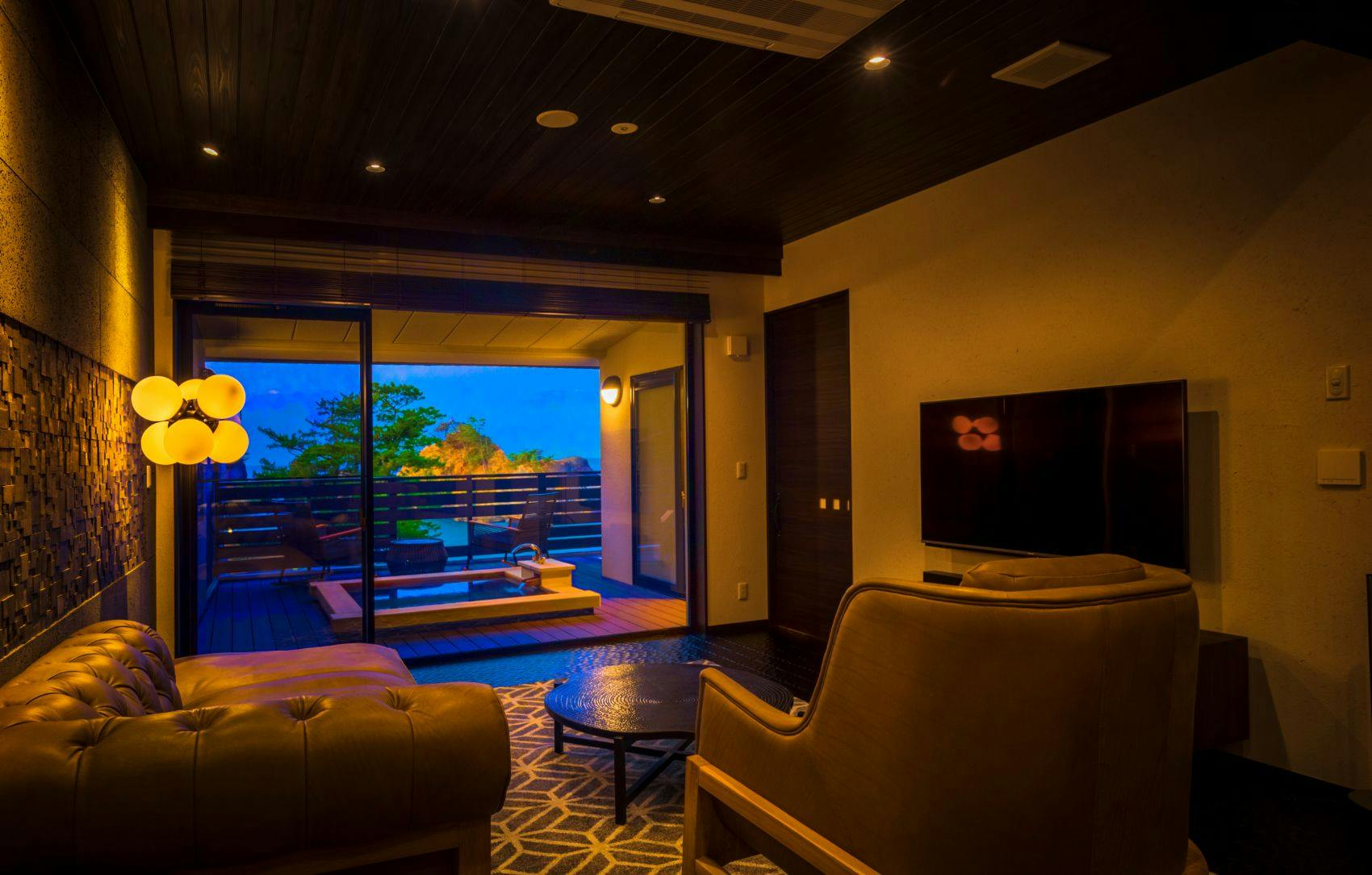 絵画のような堂ヶ島の海と島々を高みから見わたす奥屋敷に6つのメインルーム。島々の緑や岩肌を近くに感じる本館に6つのプライベートルーム。2つの棟の2つのお部屋をご利用いただける6組様限定の湯宿です。