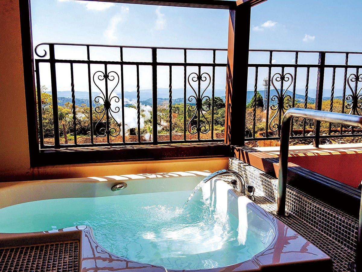 天然温泉を引き込んだビューバスで、異国情緒を満喫しながら極上の湯浴みをお愉しみください