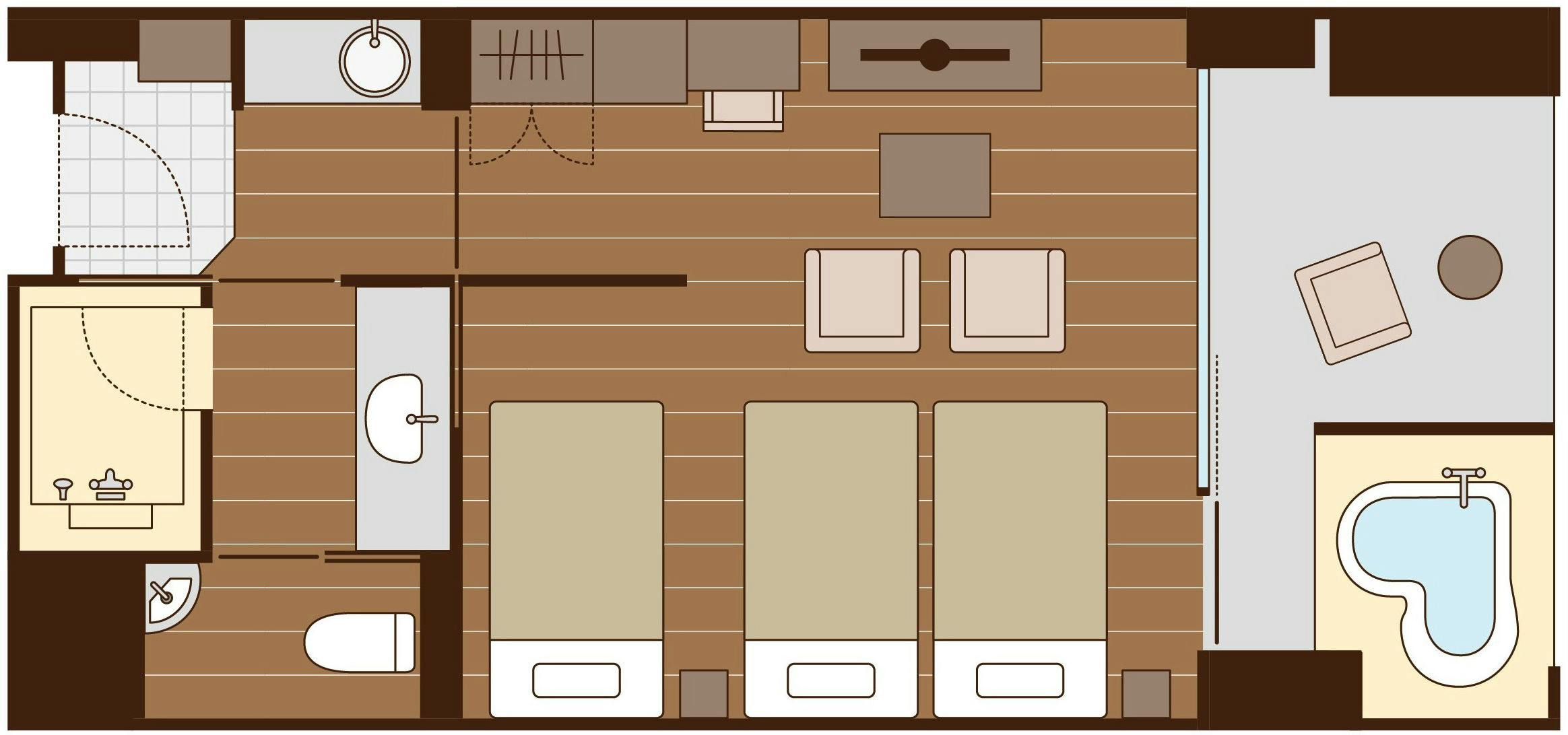 南国リゾートの解放感を感じさせる<トリプル>のお部屋は、