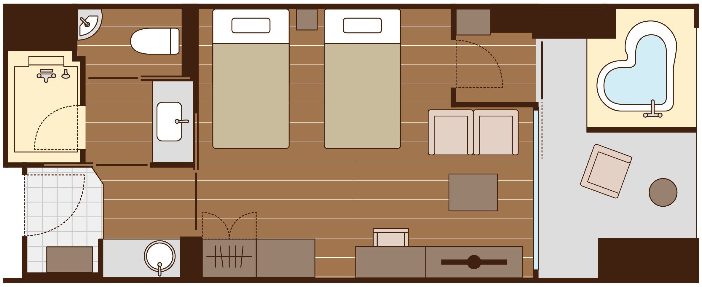 適性と機能性、そしてリゾート感を兼ね備えた「ツインタイプ」のお部屋。