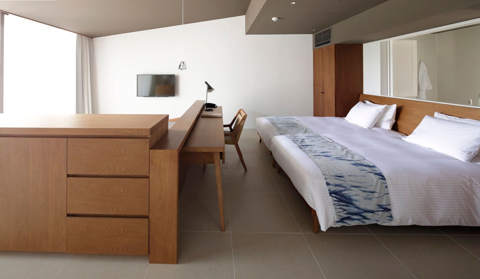 土地や風土、文化を織り込みながらも自然と調和したアートやファブリックが心地いい創りに。