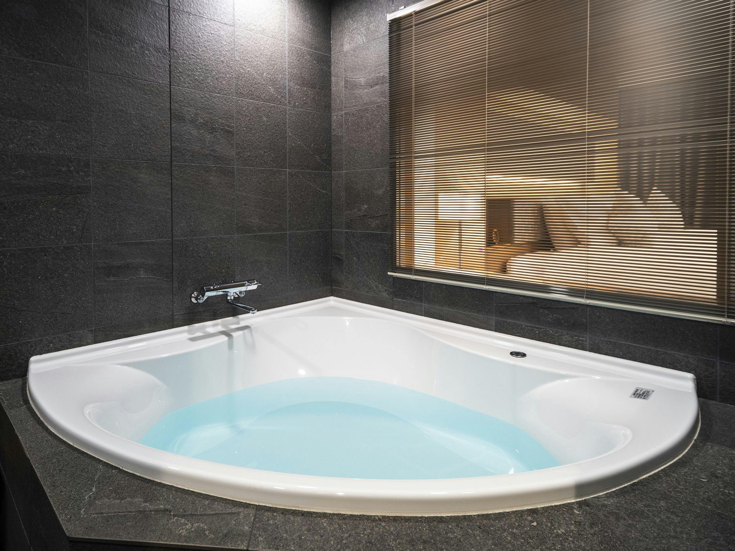 メゾネットタイプ。入浴いただきながら眺められる専用庭を設けるなど、ゆったりとした寛ぎの時間をお過ごしいただけます。(窓はすりガラスです)