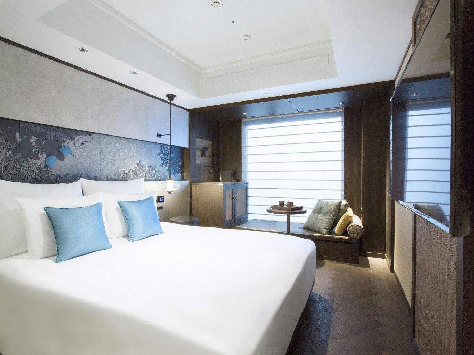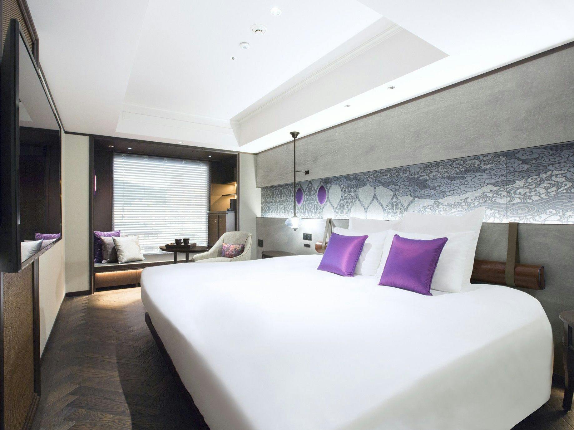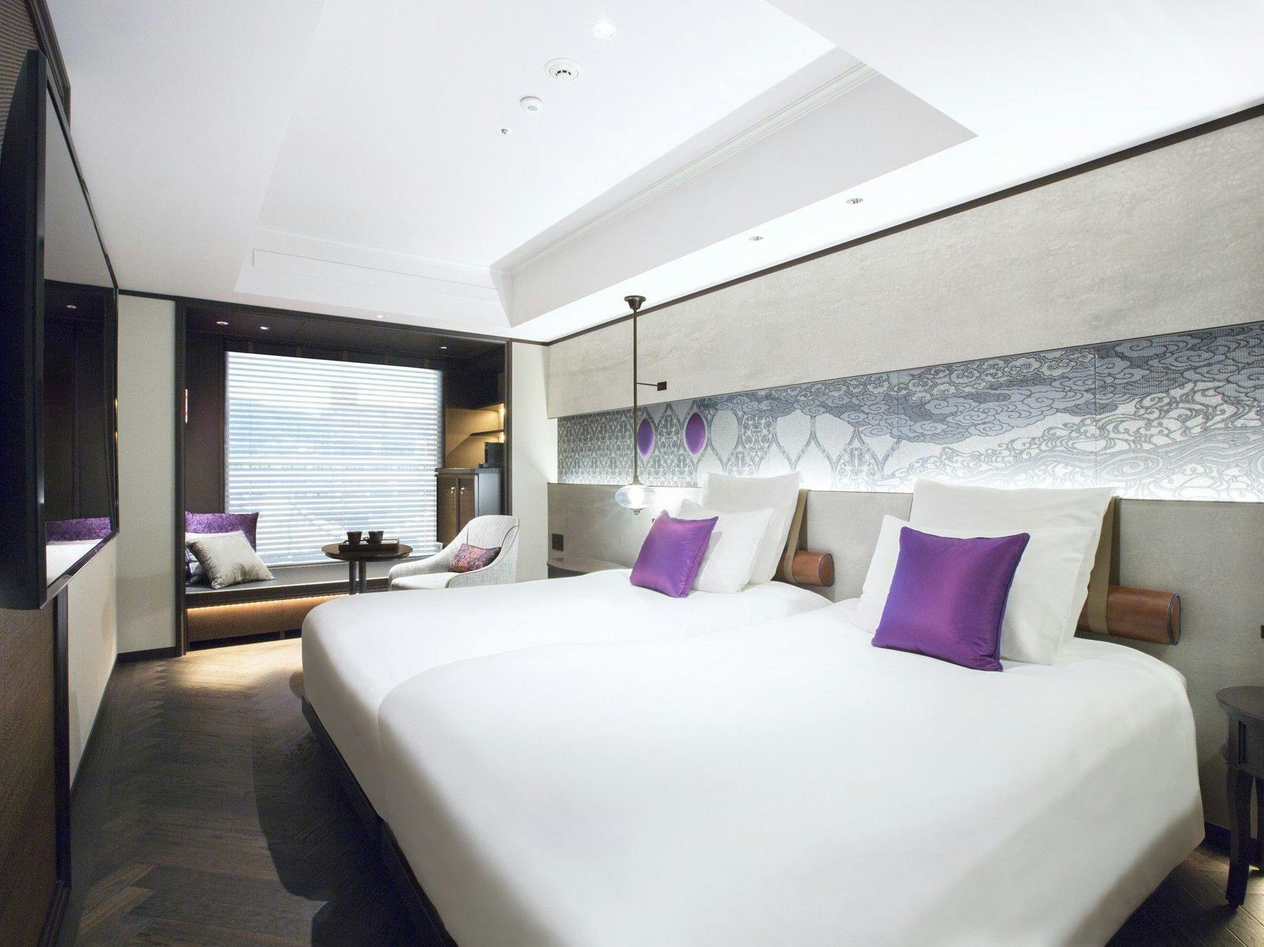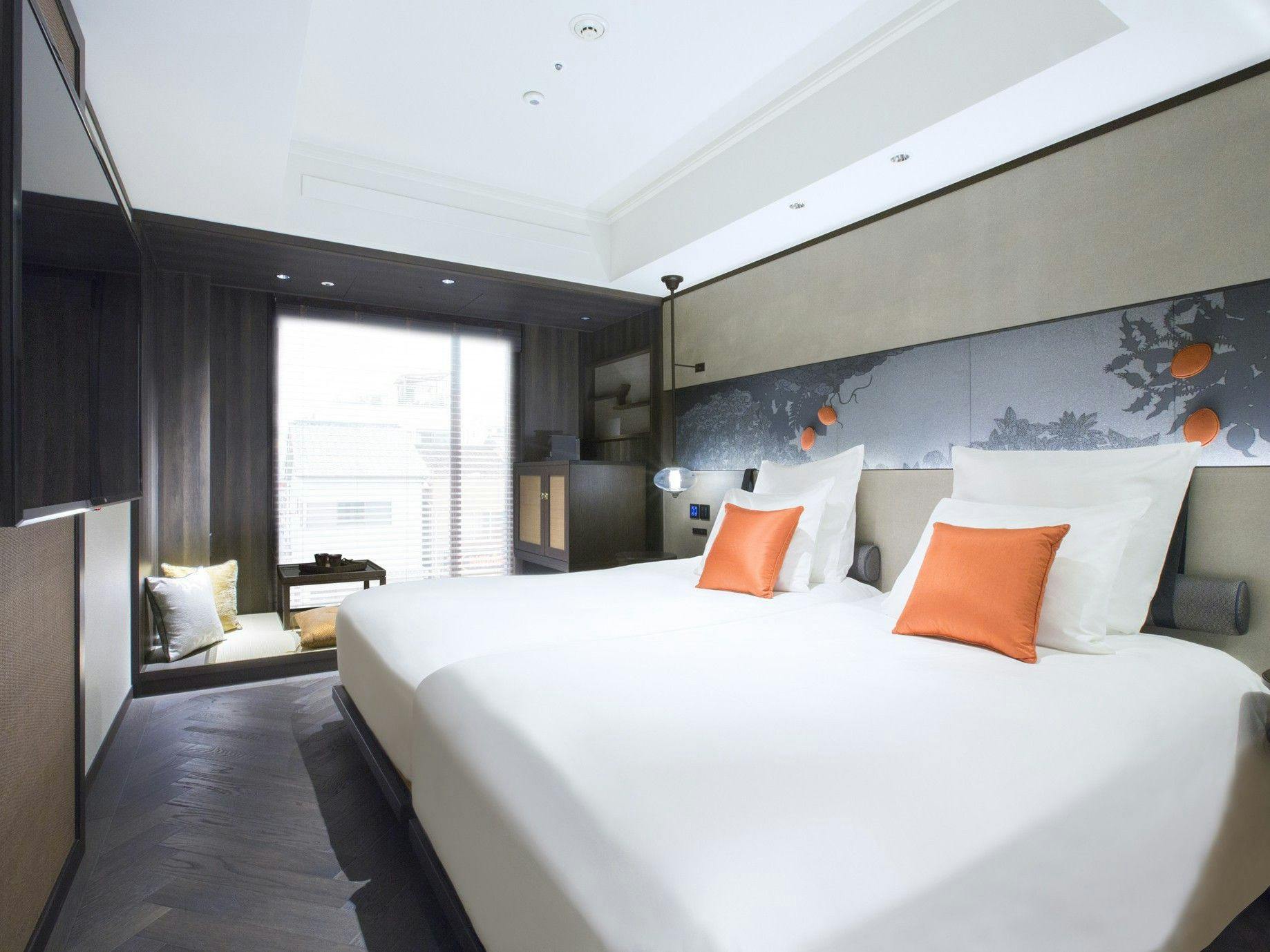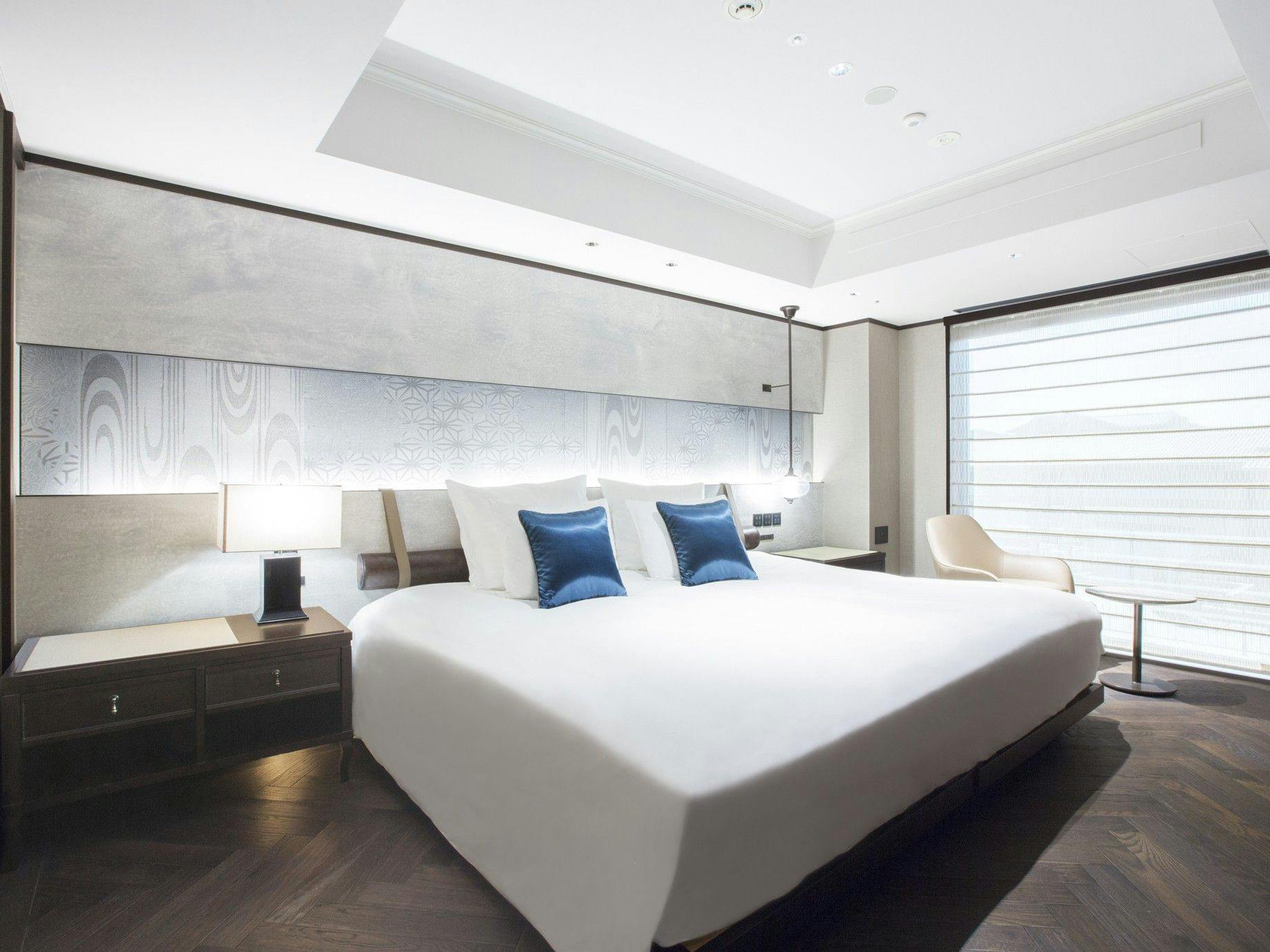 西陣織のヘッドボードや大正ロマン時代を思わせる意匠のペンダントライトなど、レトロとモダン、和と洋を融合させたデザインが特徴。日本の美意識をお感じいただける空間でゆっくりとお寛ぎください。