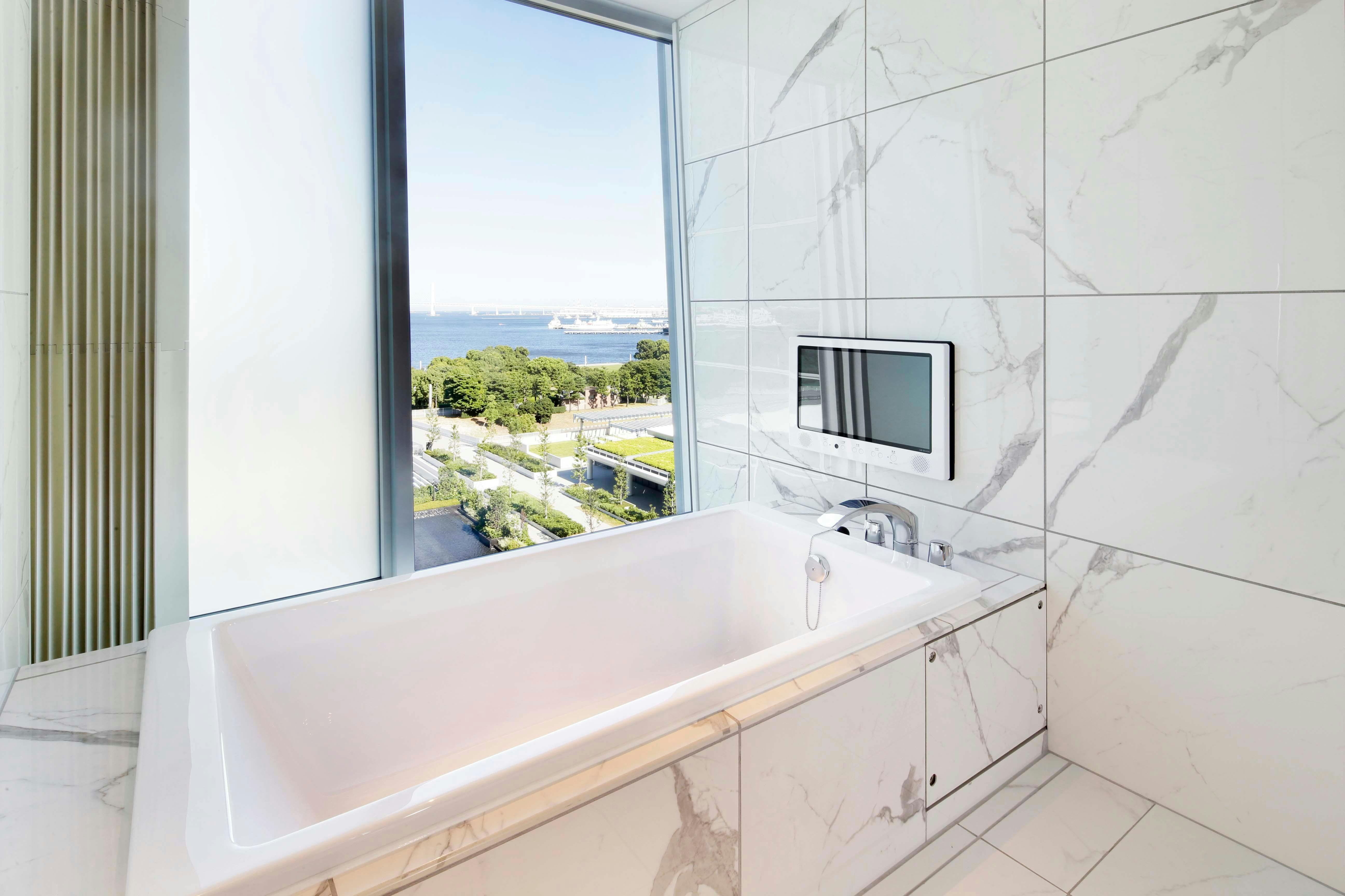 バスルームの大きな窓からもみなとみらいの景色を眺めることができます。