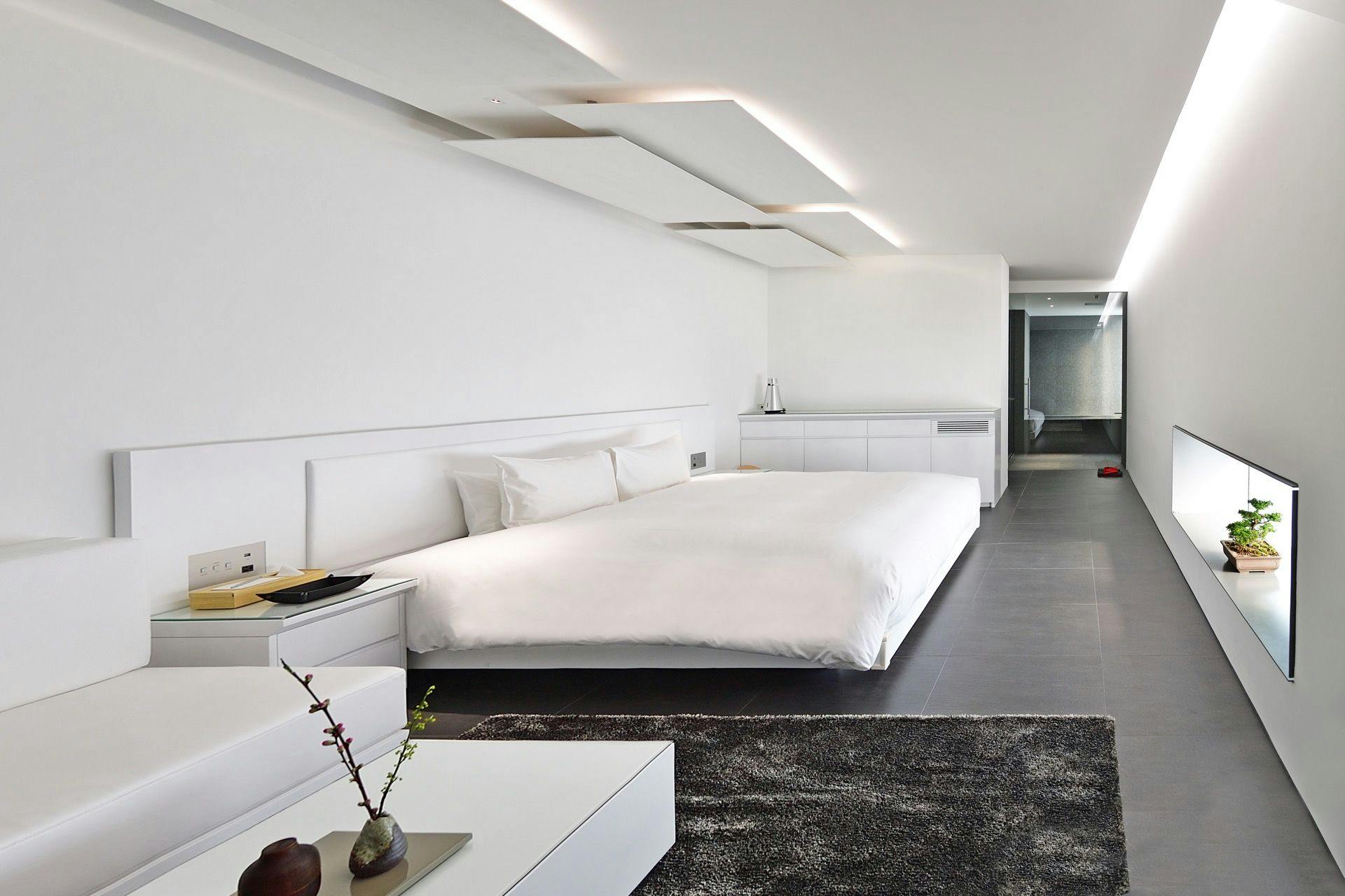 MOGANA Whiteは壁面緑化に面した自然光の指す明るいお部屋です。床には大理石を用い、壁や天井、家具類も柔らかい白で統一されています。黒御影石を用いた深く広々としたバスタブ、湯に浸かりながら坪庭を眺めることができる設計となっております。