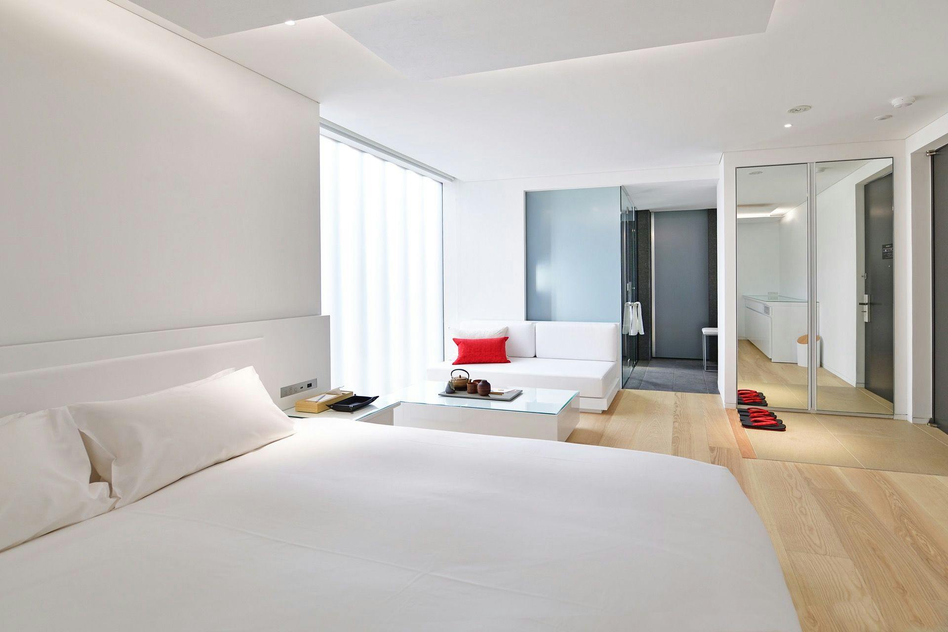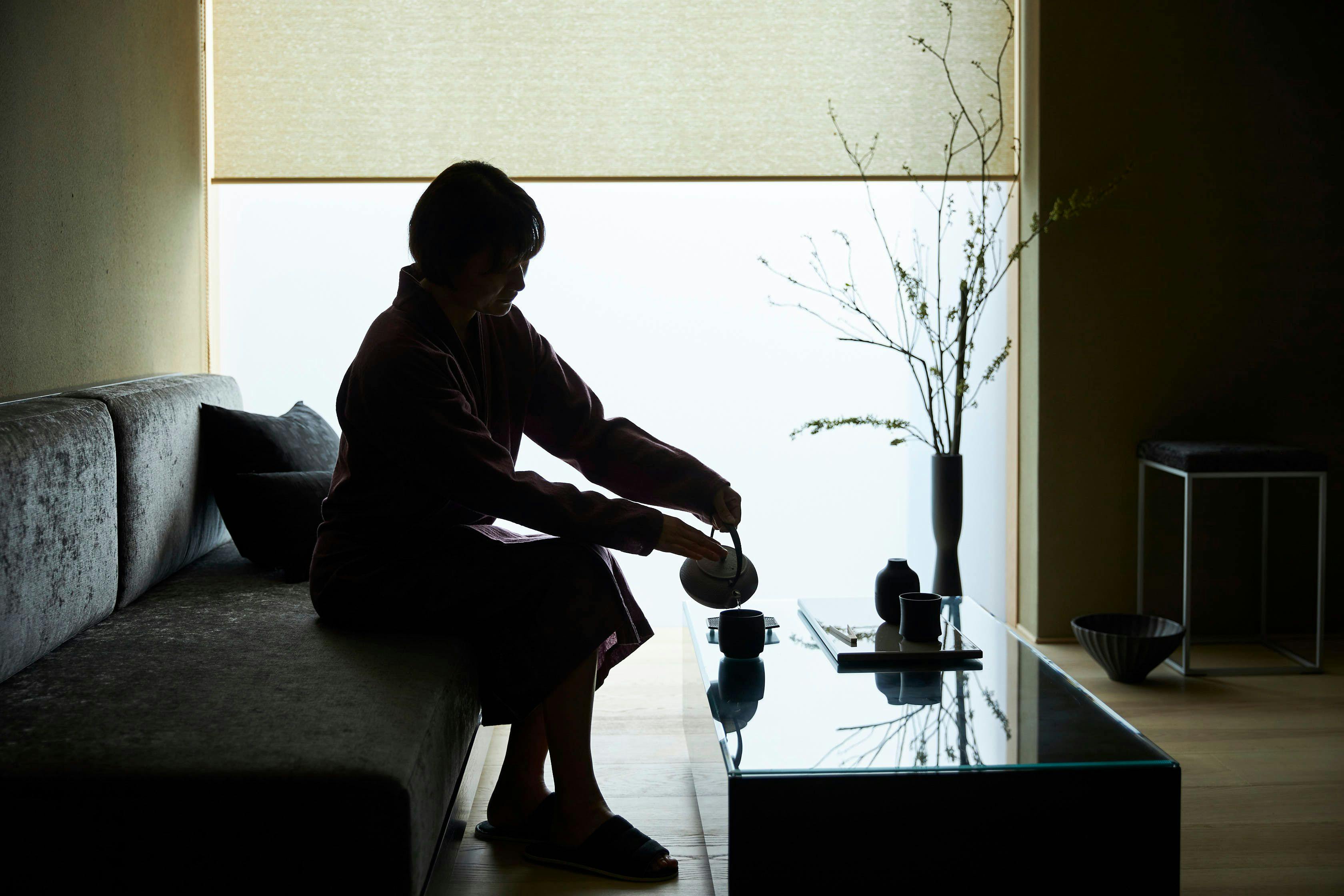 日本の伝統美の象徴である坪庭と、現代的な空間美を追求したお部屋との調和をお愉しみ下さい。あえて客室にはテレビはございません、坪庭を眺めながらくつろぐ現代的な空間でひととき時間を忘れ、職人手作りの茶器セットやハンドドリップで淹れるコーヒー、B&Oオーディオからの音色などゆっくりとした時をお楽しみください。喧騒から離れた空間でお過ごし頂けます。