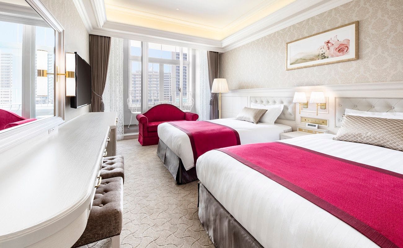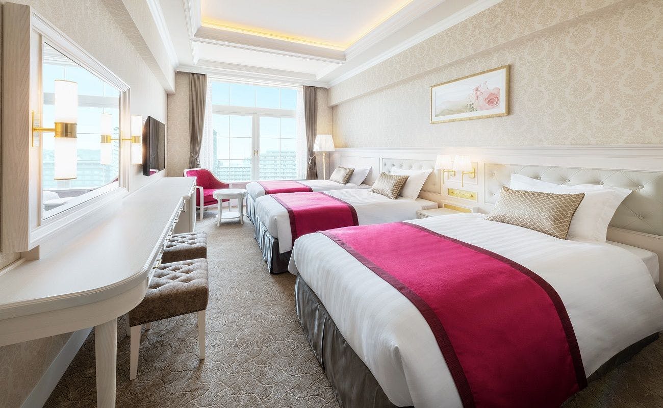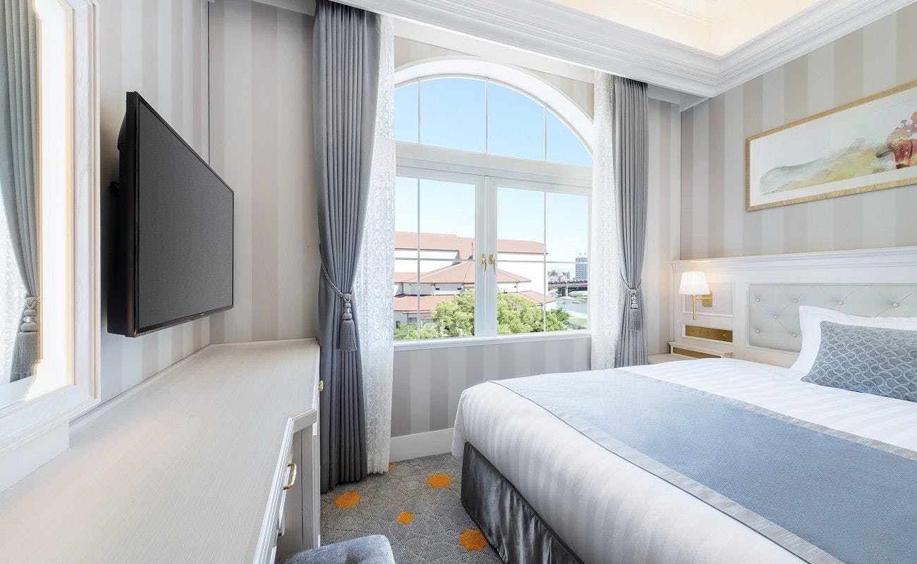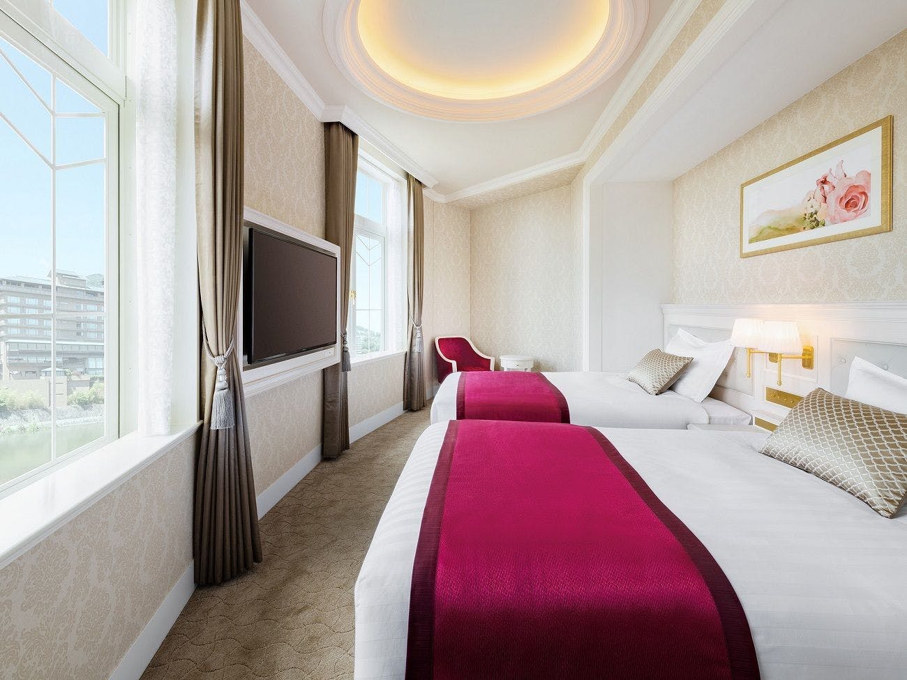 客室の窓からは「宝塚大劇場」を臨むことができ、寝ても覚めてもタカラヅカを感じていただけます。