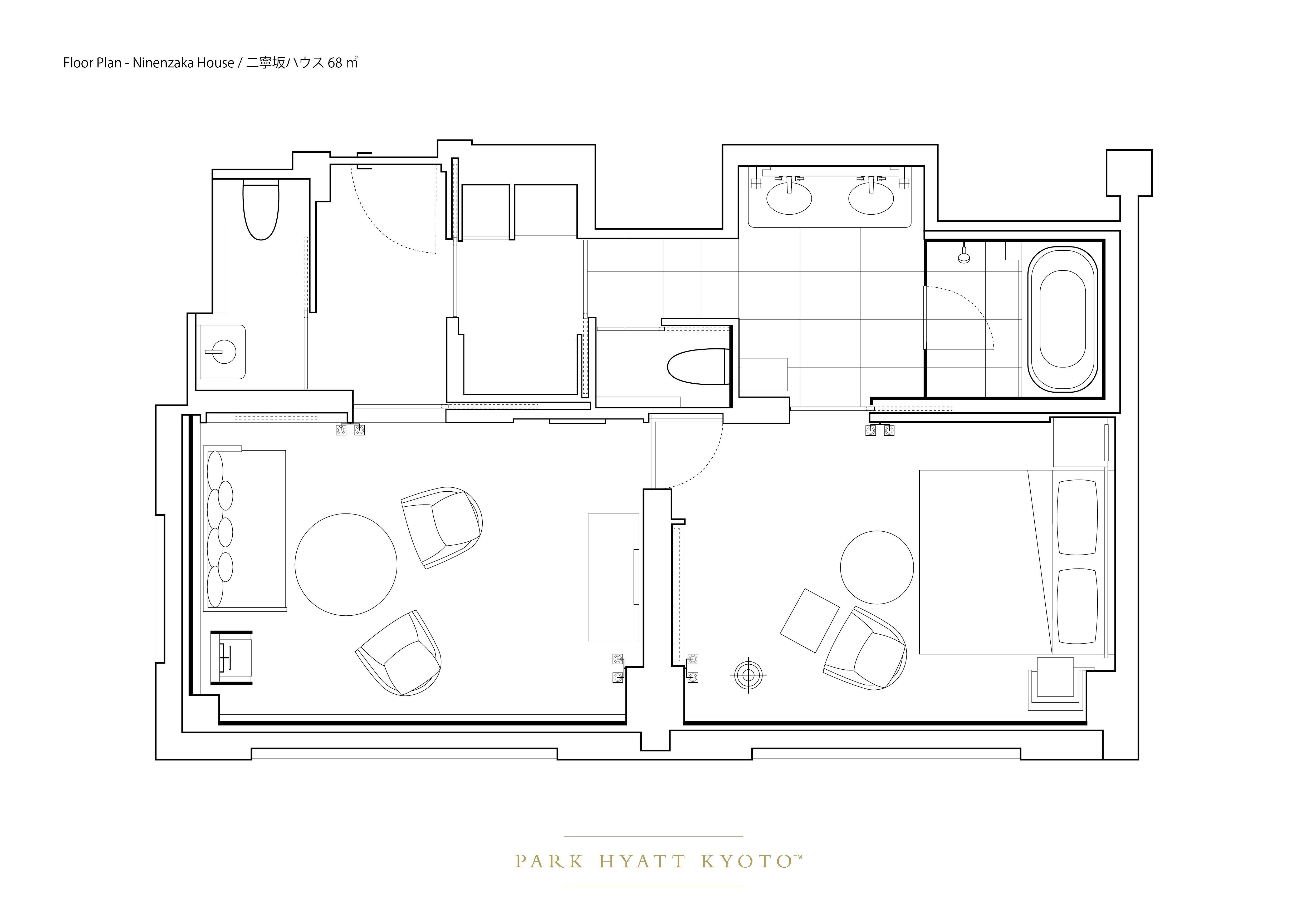 八坂の塔や京都の街並み、ドラマチックな夕焼けをお楽しみいただくことができる、45平米のお部屋です。 京都の山々をコンセプトにしたインテリアは、芳しいタモ材や地元の素材が取り入れられ、心地のいい空間を作り出しています。キングサイズベッド1台(またはツインベッド)、ワーキングエリアとデイベッドが備えられ、東山での寛ぎのひと時をお過ごしいただくことができます。