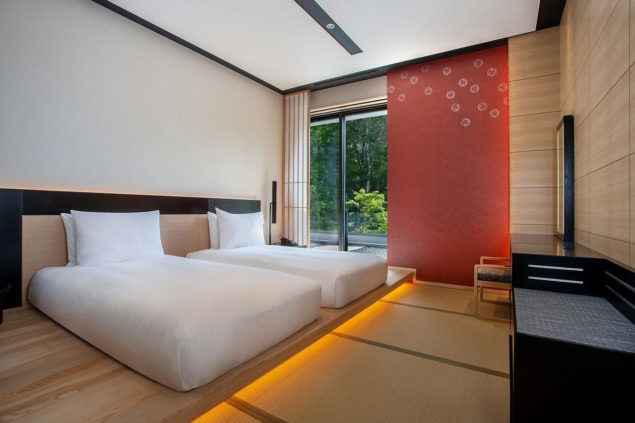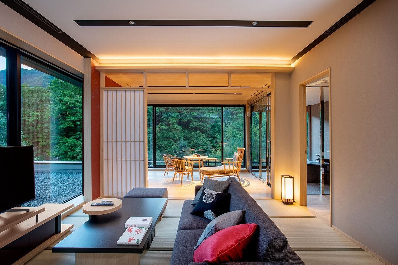 札幌の奥座敷 定山渓の豊かな森と水に囲まれ、静かに佇む隠れ宿。日本の文化と西洋の快適さを取り入れたラグジュアリーホテルです。67~137平米の全26室には上質の温泉を備え、大浴場にはサウナも併設。