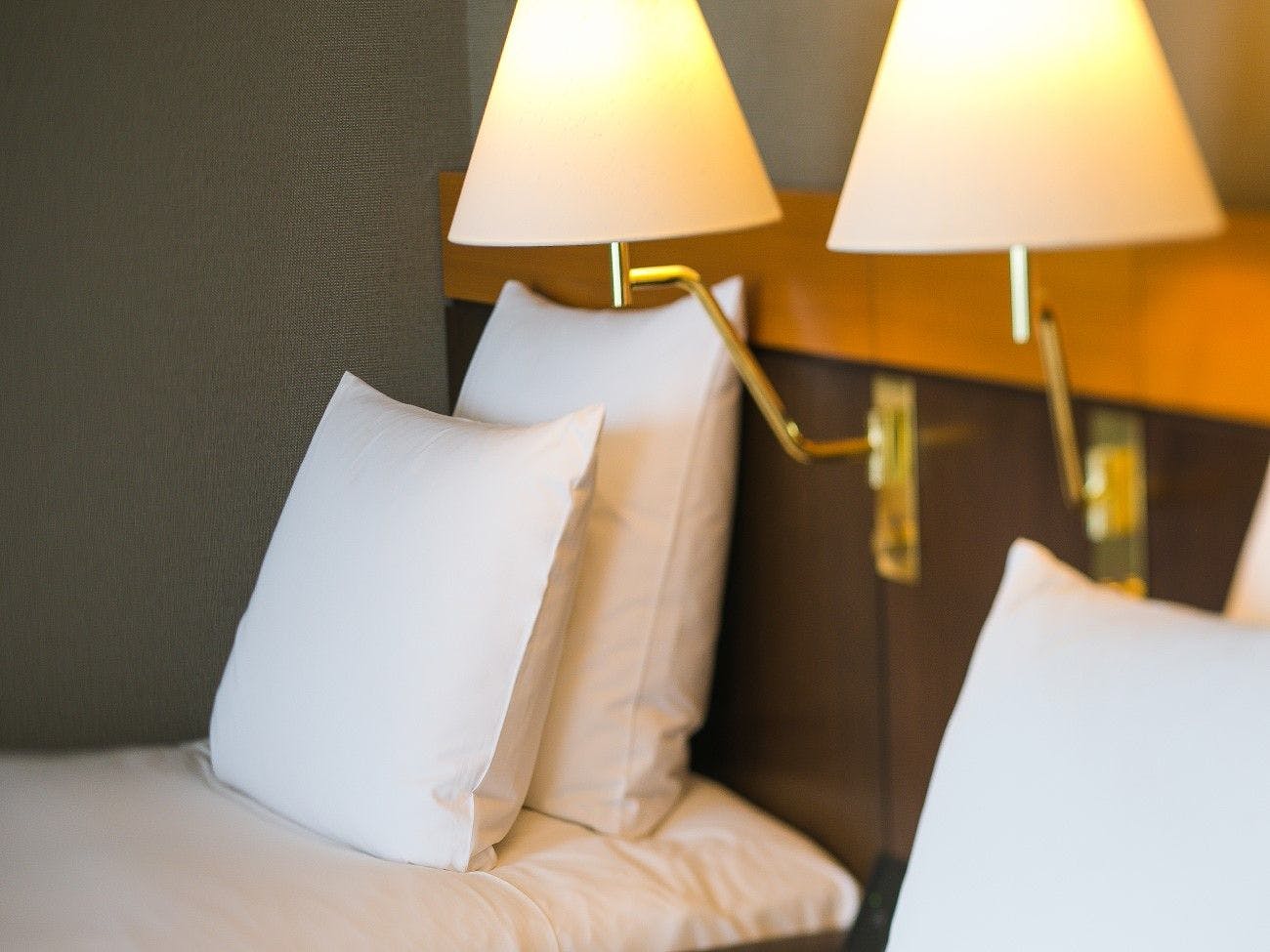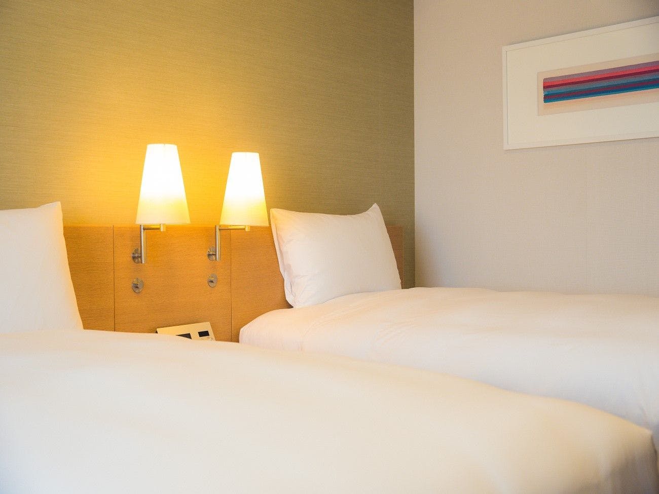 2台のベッドを寄せて並べたハリウッドタイプなので、