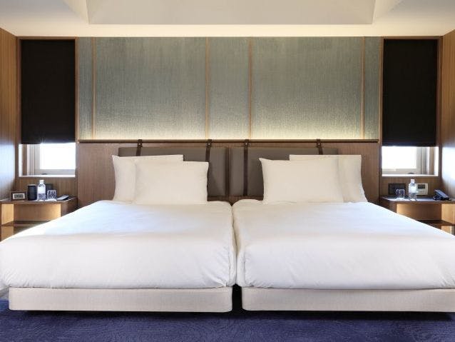 ラグジュアリーホテルならではのゆったりとした開放感のある広さ67平米の客室でございます。