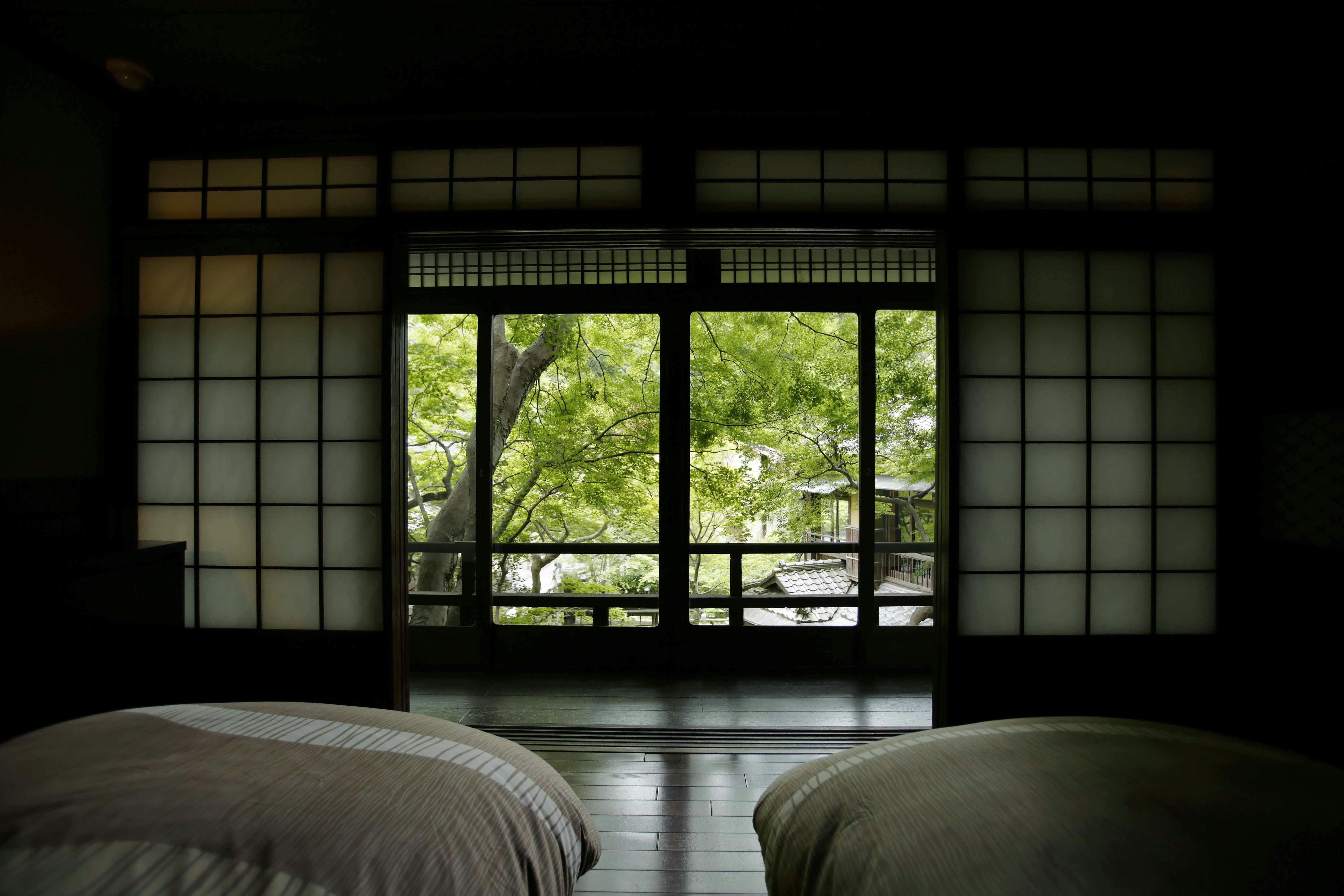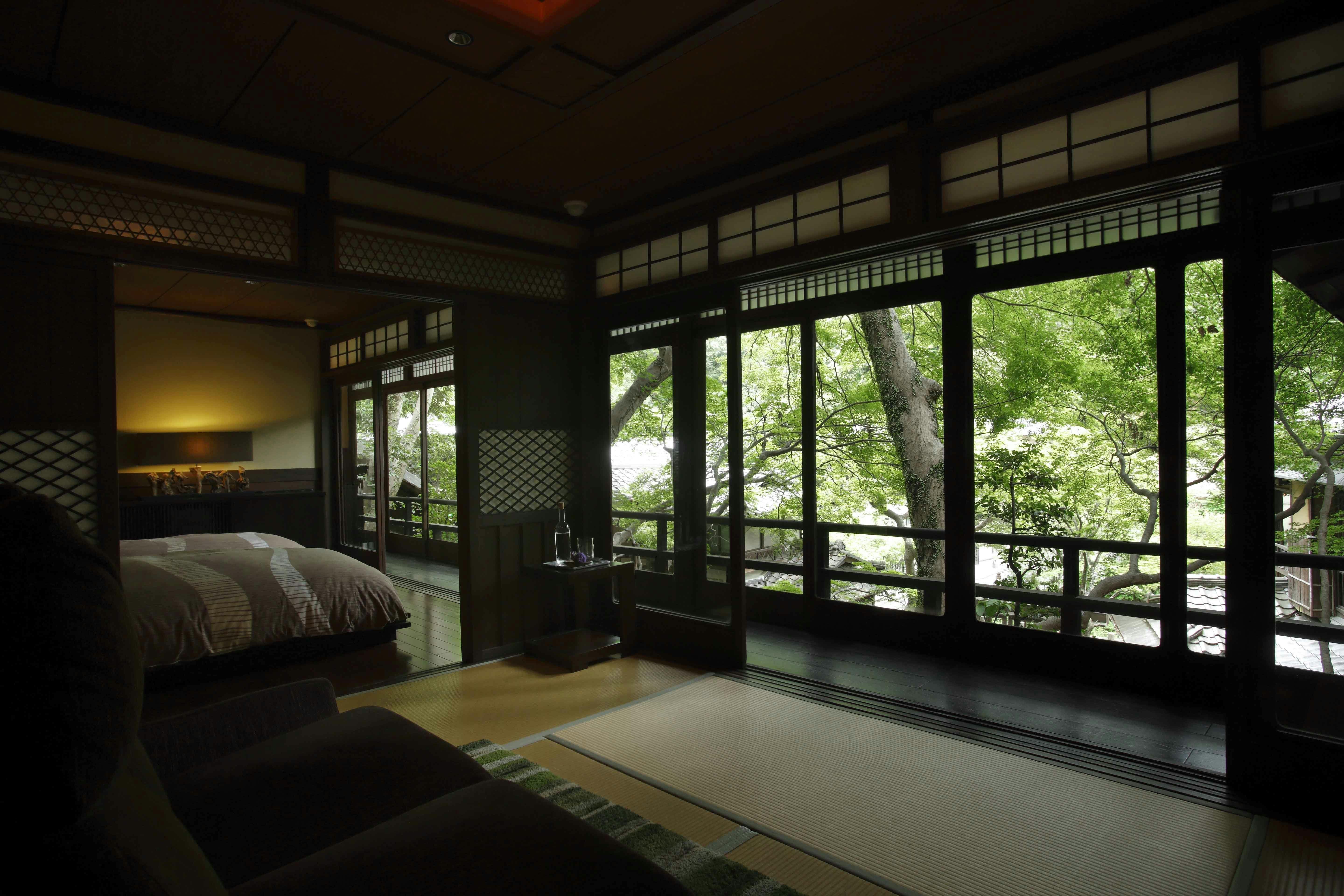 中庭を見晴らす特別室明治の森の四季折々の美しい景観をお楽しみください