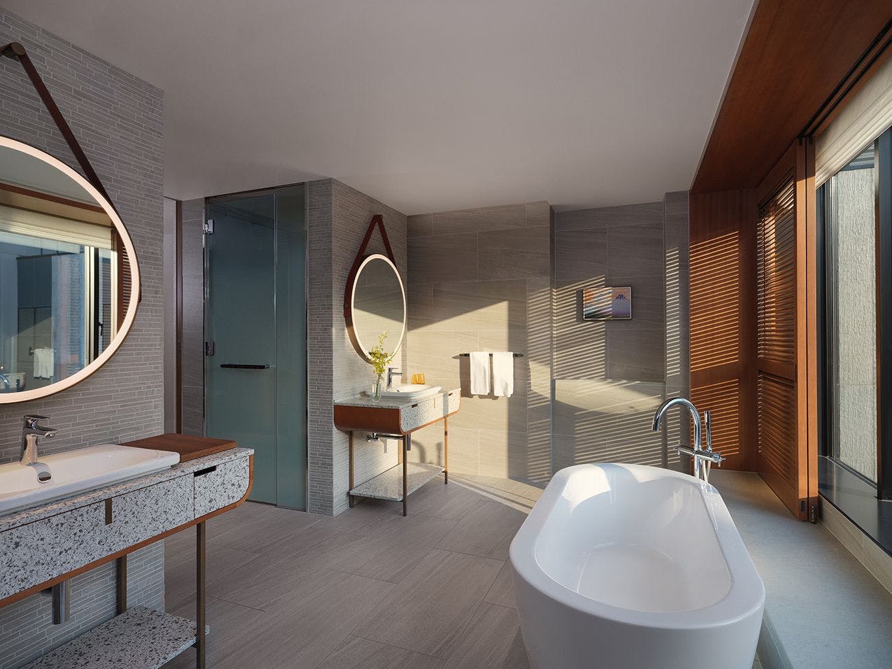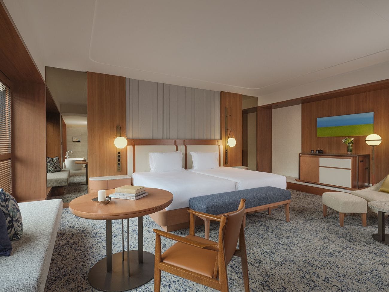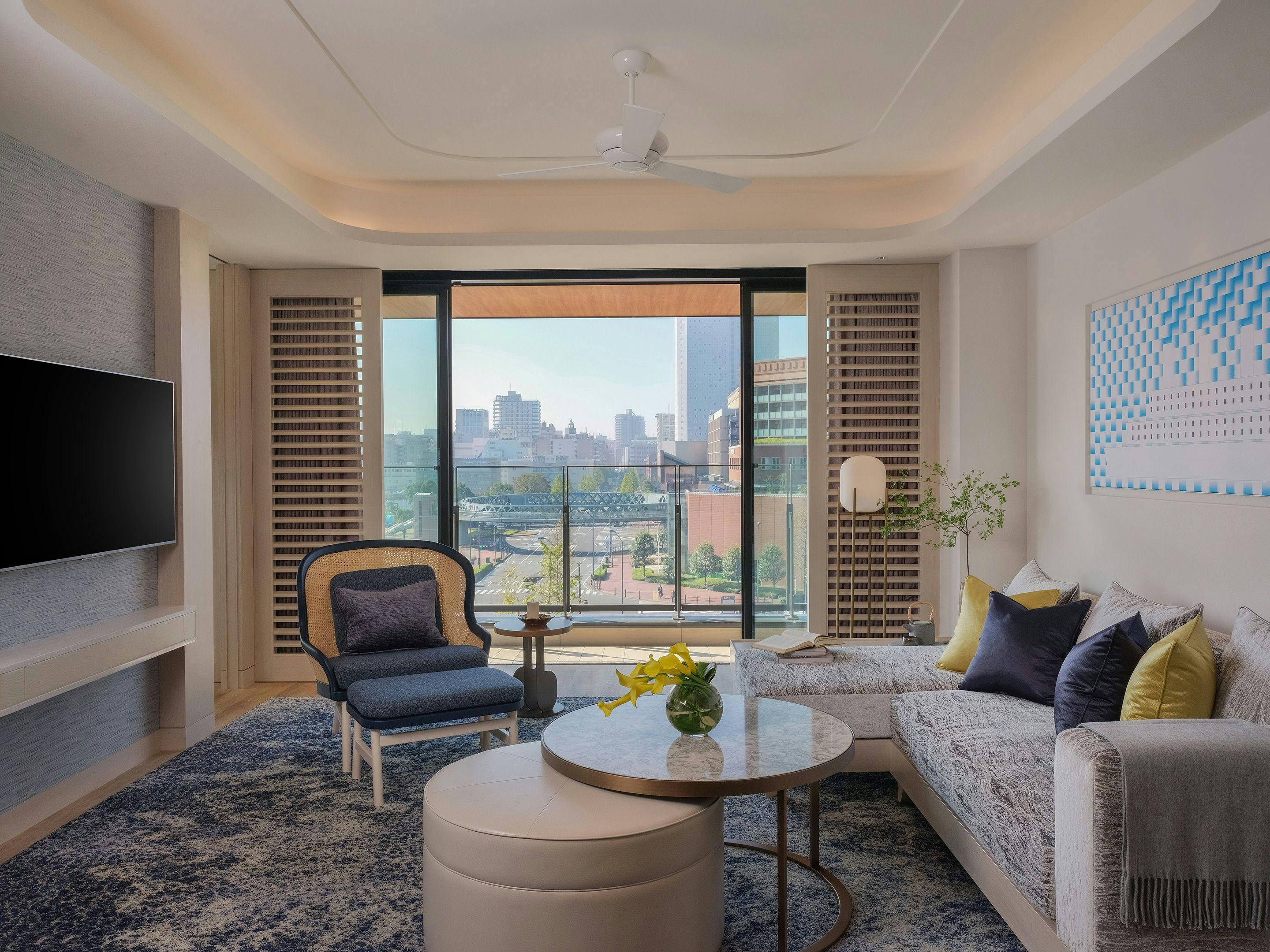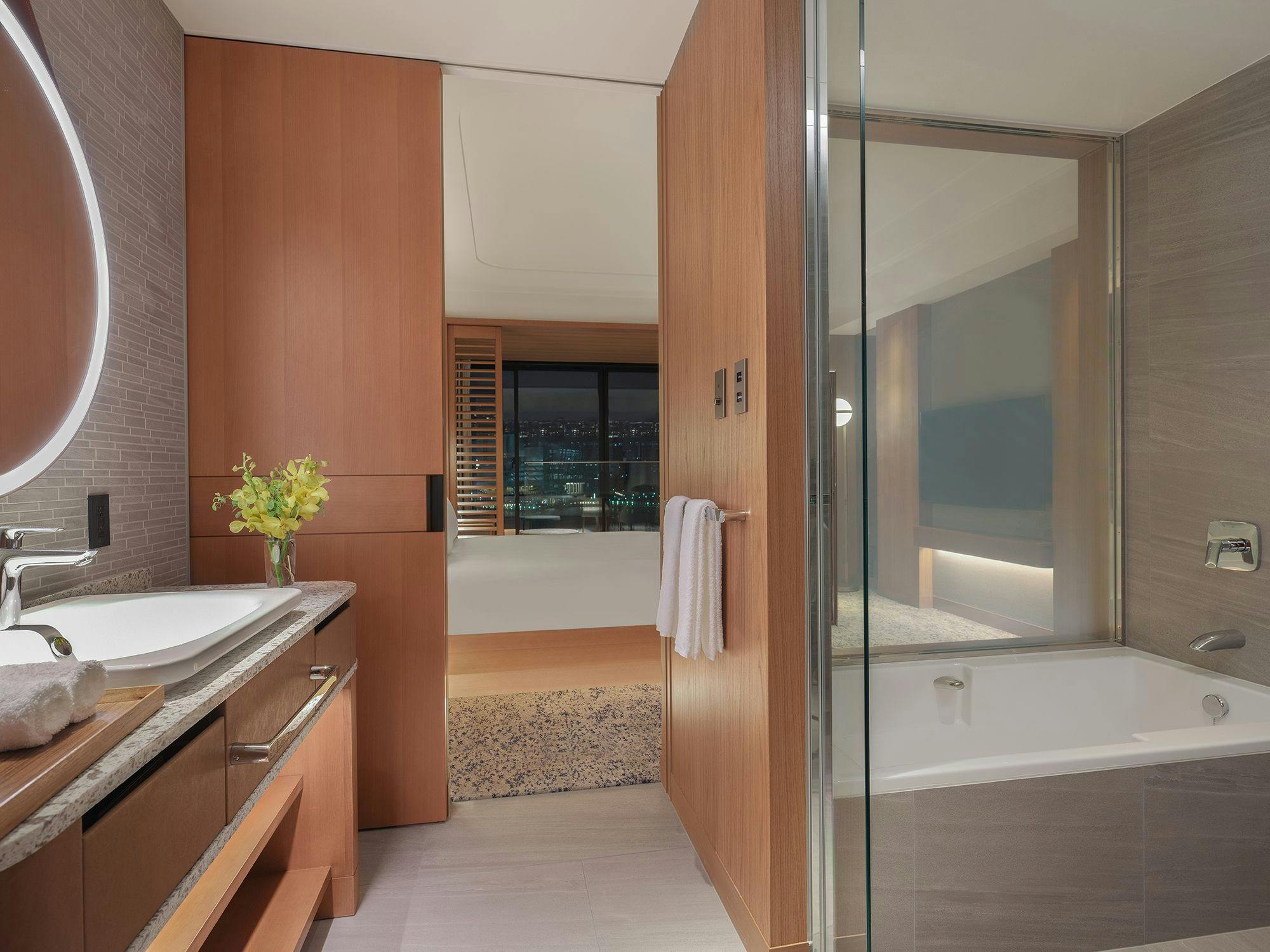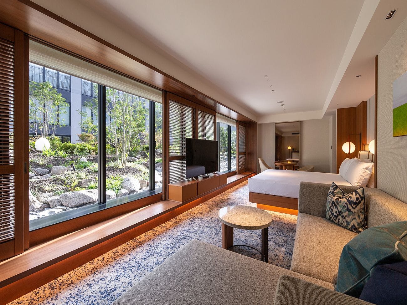 窓越しに感じる中庭の緑で、季節をお楽しみいただけます。広々としたバスルームでは、優雅なバスタイムを。周囲の喧騒を忘れさせるプライベートな空間で、リラックスした時間をお過ごしください。