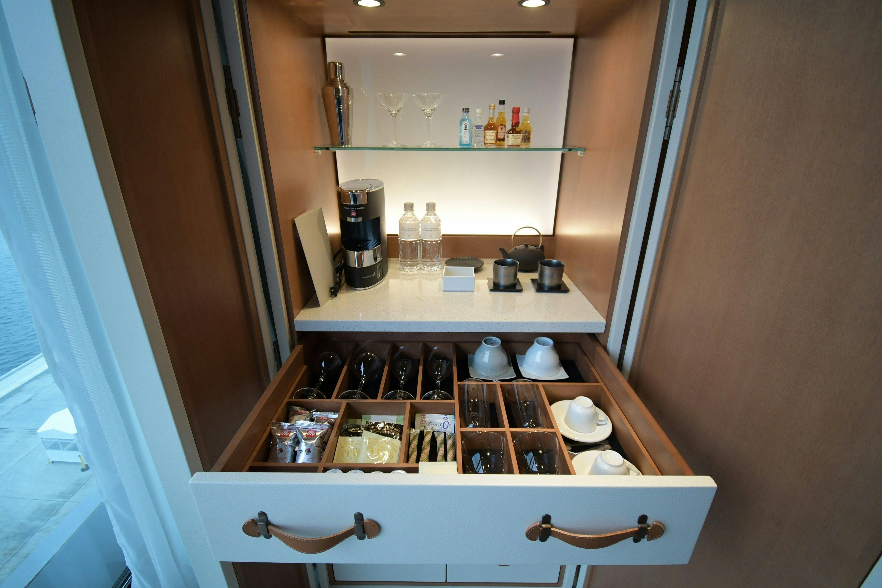 バルコニー、バスタブ、ウオークインシャワー、トイレ(温水洗浄便座)、インターネット接続(Wi-Fi・有線LAN)、HDMI端子、朝刊(要事前リクエスト)、地上波・BSデジタル対応液晶テレビ、冷蔵庫、ミニバー、エスプレッソマシーン、湯沸かしポット、加湿器、空気清浄機、セーフティーボックス、電話、アイロン&アイロン台、ヘルスメーター、ヘアドライヤー、ナイトウエア、バスローブ、バスタオル、ハンドタオル、ウォッシュタオル