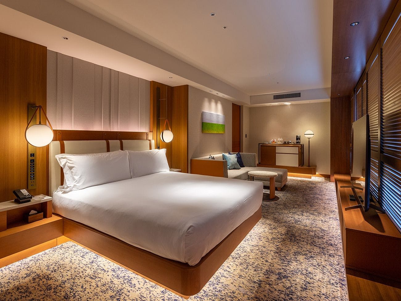 バルコニー、バスタブ、ウオークインシャワー、トイレ(温水洗浄便座)、加湿器/空気清浄機、インターネット接続(Wi-Fi・有線LAN)、HDMI端子、朝刊(要事前リクエスト)、地上波・BSデジタル対応液晶テレビ、冷蔵庫、ミニバー、エスプレッソマシーン、湯沸かしポット、セーフティーボックス、電話、アイロン&アイロン台、ヘルスメーター、ヘアドライヤー、ナイトウエア、バスローブ、バスタオル、ハンドタオル、ウォッシュタオル