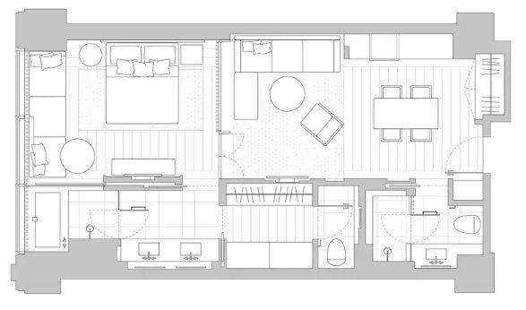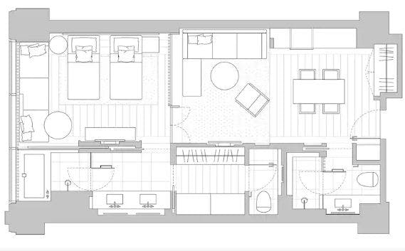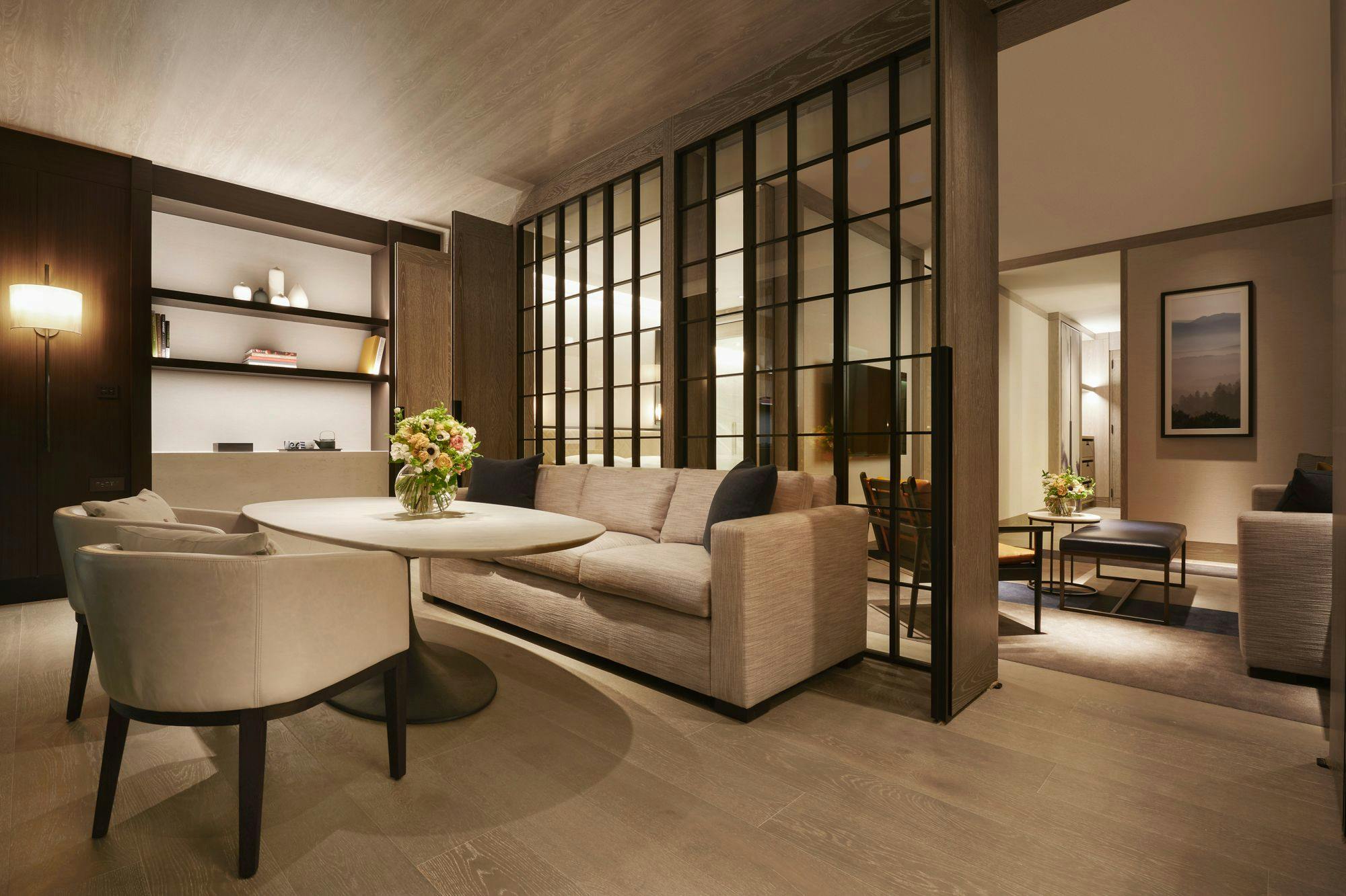 洗練されたインテリアの65平米の空間は、真の安らぎを感じることができる上品な質感で統一されています。ツインベッドを配したベッドルーム、4名がけテーブルを配したダイニングエリア、ウォークインクローゼット、レインシャワーとバスタブ付きのバスルームなど、いずれのスペースにも贅沢な広さを確保しております。また、リビングにはフルサイズのダブルベッドとしてもお使いいただける快適なソファをご用意しました。ウォークインシャワーのセカンドバスルームを備えることで、気兼ねすることなく、心からくつろいだ滞在を実現します。