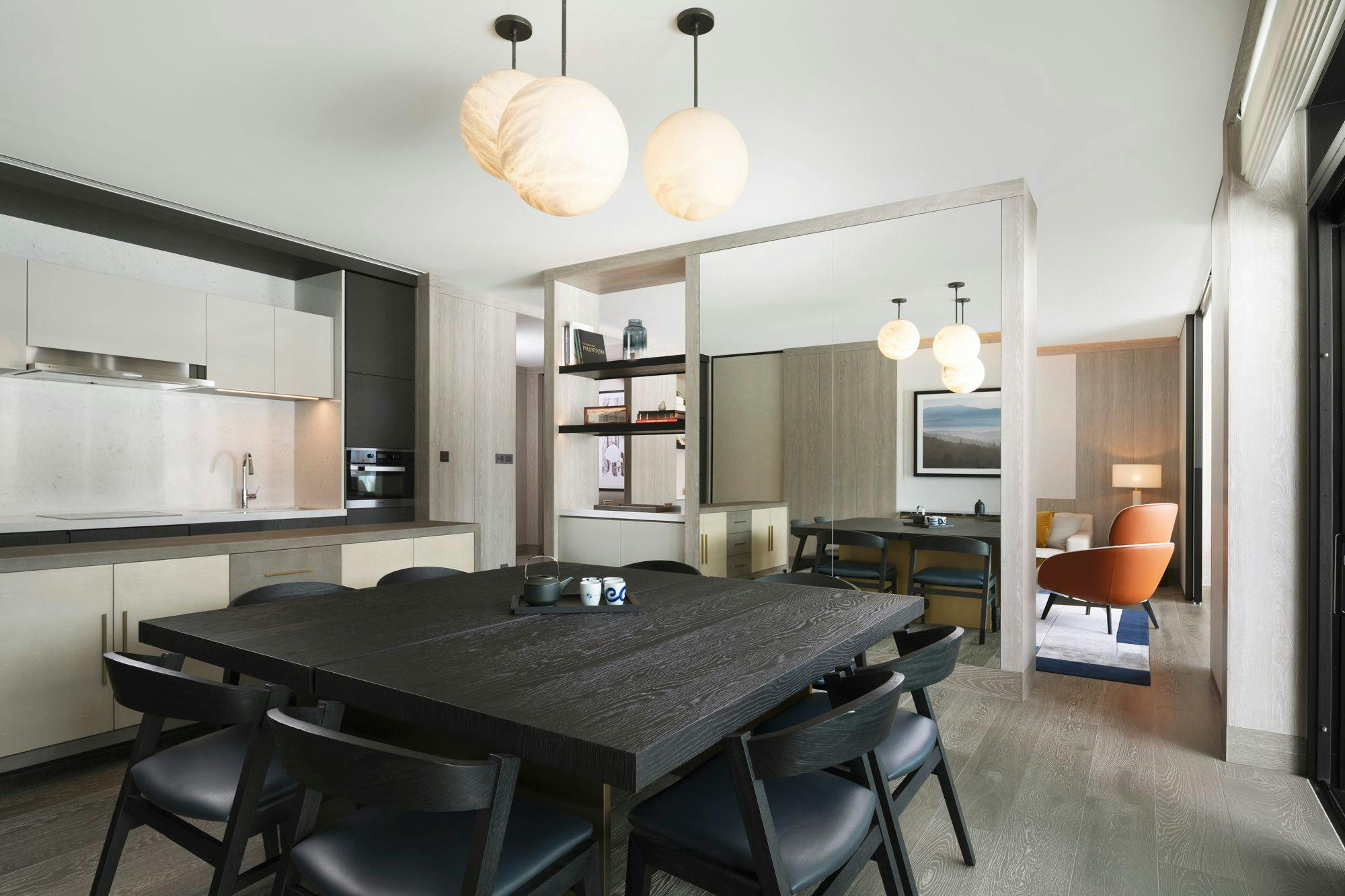 広さ157平米の空間に3つベッドルームをご用意しました。広々としたバルコニーからは、雄大な羊蹄山を一望にできます。清涼な空気に包まれながら半露天の温泉にゆったりとつかり、目前に広がる北海道の美しい大自然を満喫するひとときも格別です。レジデンス内には、キッチン、冷蔵庫、洗濯乾燥機を完備。優美で洗練されたインテリアのリビング、ダイニングエリアでは、まるで我が家のようにおくつろぎいただけます。上質な眠りへといざなうマスターベッドルームは、ゆったりとした深さの贅沢なバスタブ、ダブルシンクの洗面化粧台、ウォークインクローゼットと隣接。プライベートエリアの高い独立性を確保しました。セカンドベッドルームには、独立したバスルームとシャワーブースを備え、さらに3つめのベッドルームをコネクトすることも可能です。ベッドタイプは異なる場合がございます。