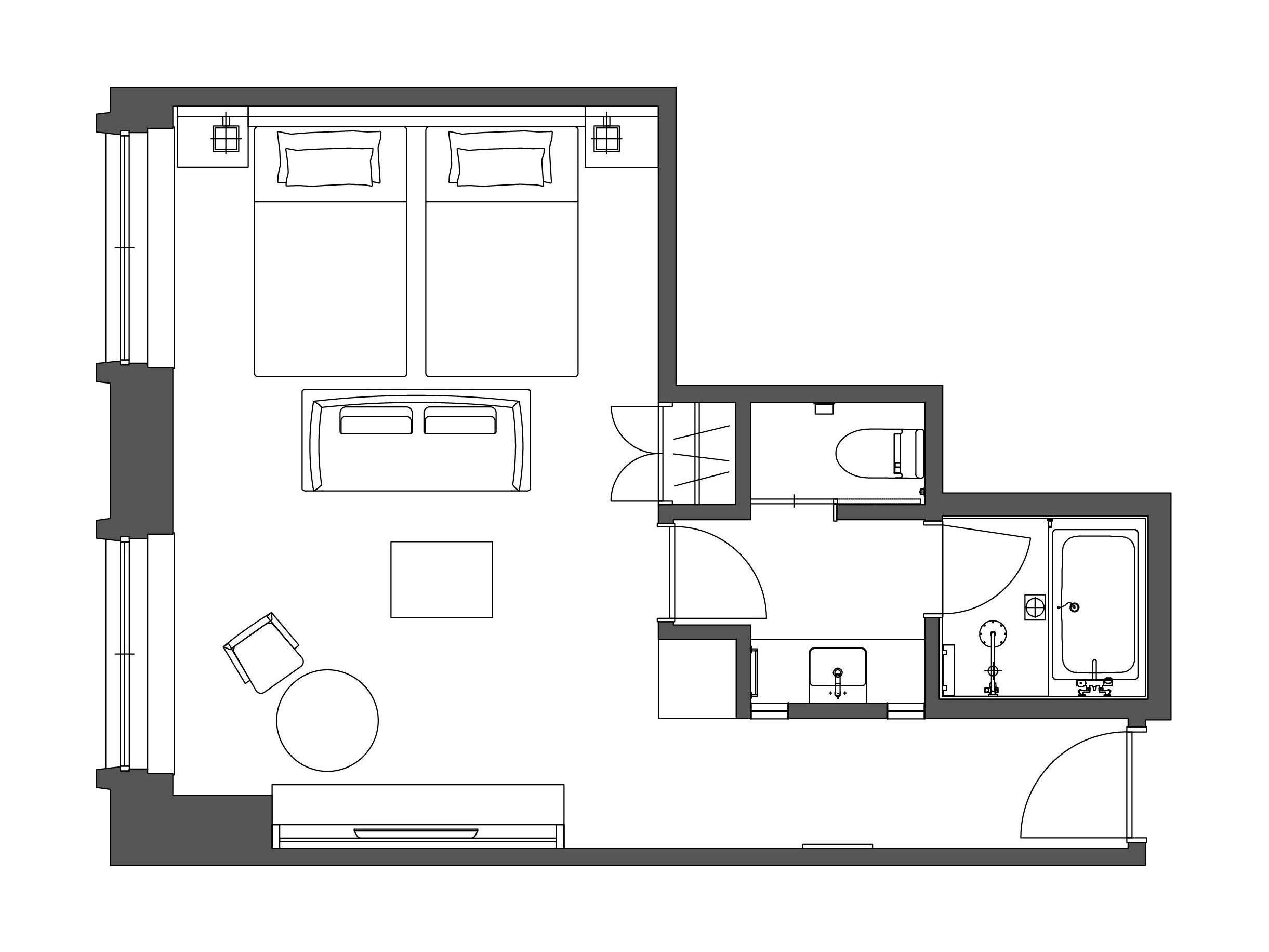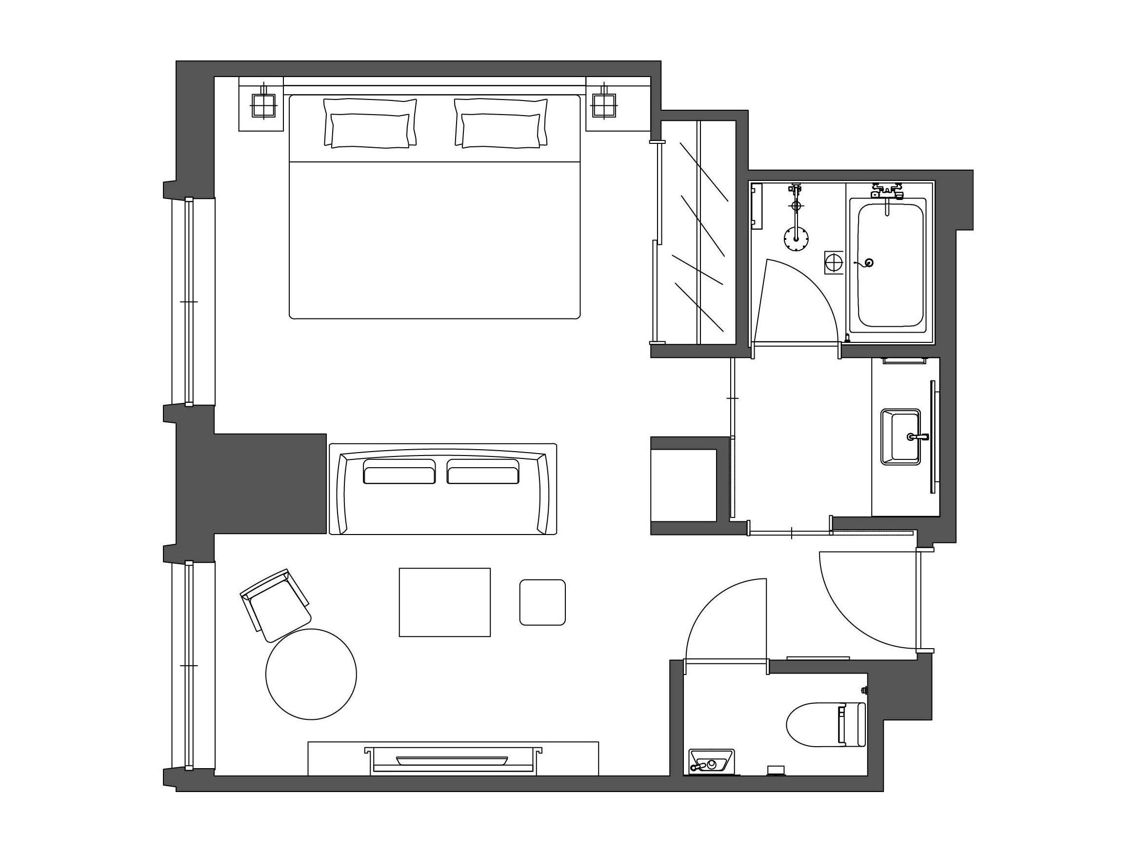 ■ツインルームには、2台ベッドのくっついたハリウッドツインタイプ、ベッドの間にサイドテーブルがあるツインタイプがございます。