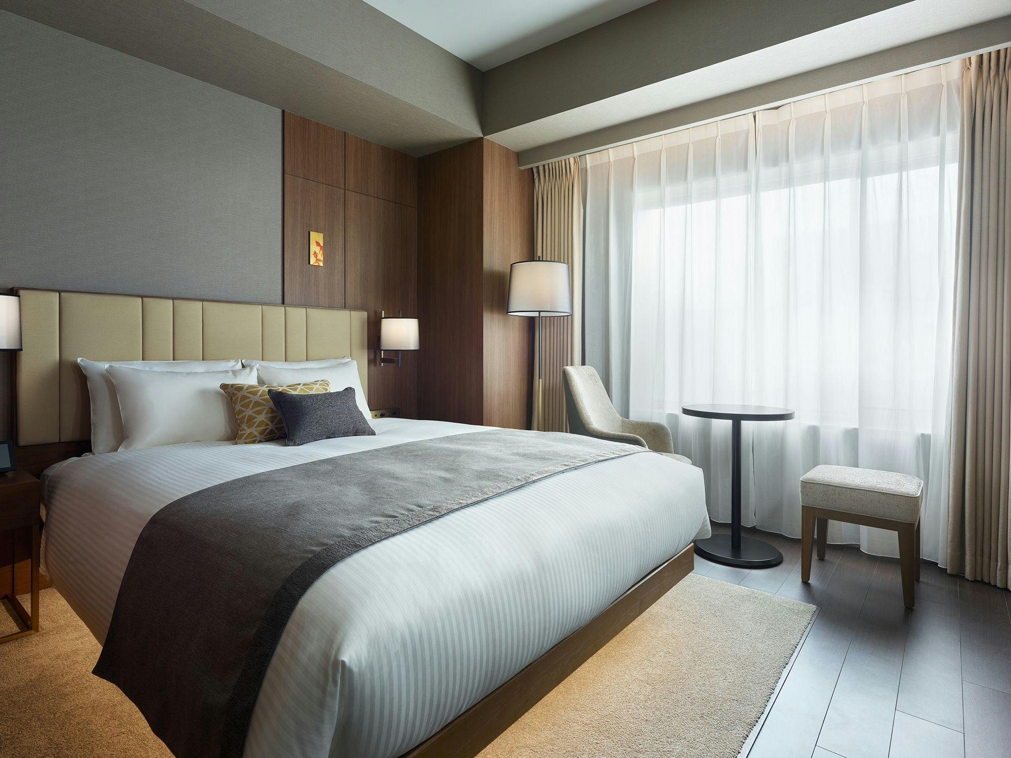 お部屋の窓際に心地よいチェアとテーブルを配したお部屋です。キングサイズのベッドでゆったりとお寛ぎください。