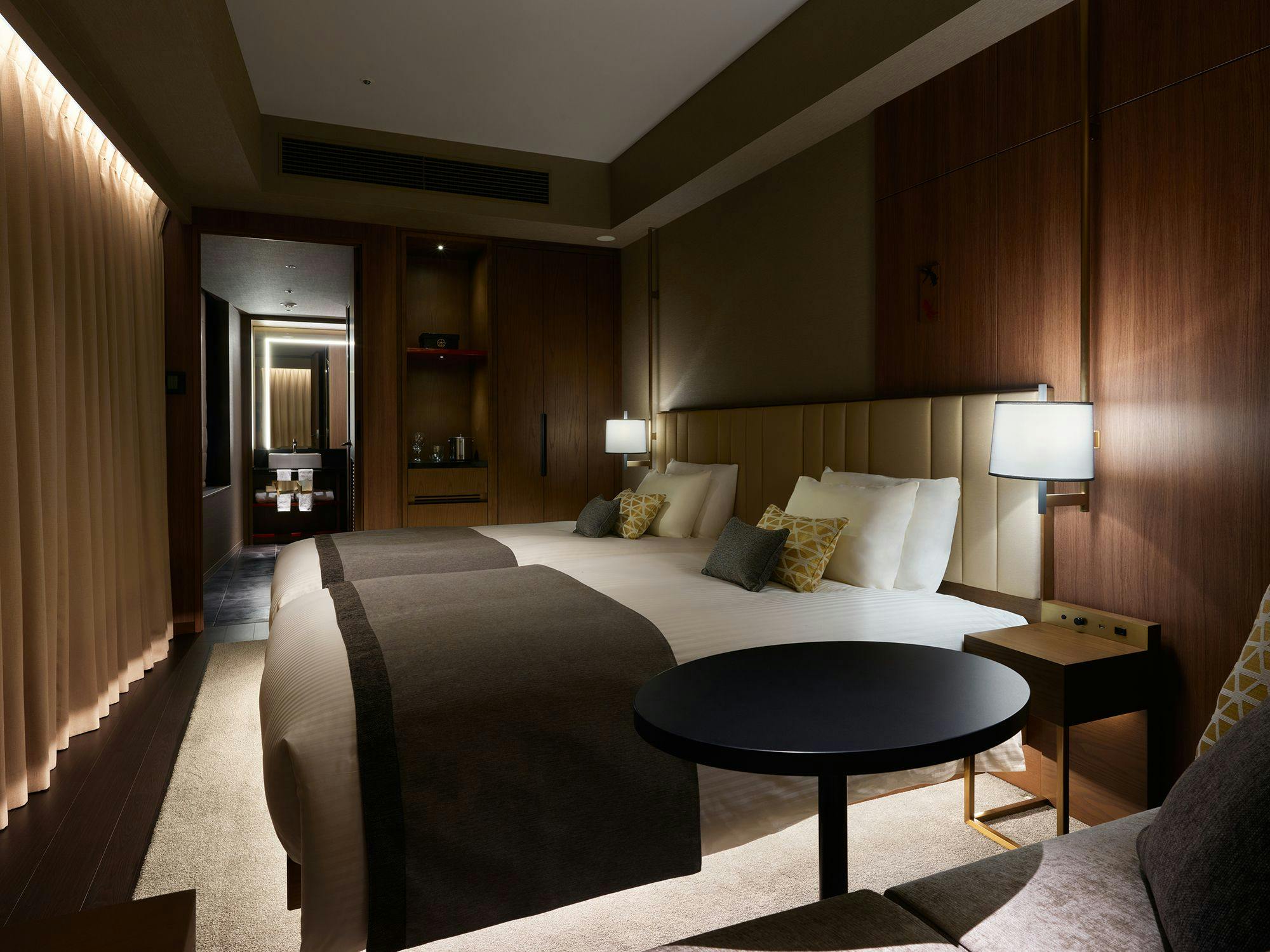 ソファを配し、お部屋でゆったりとした時間をお過ごしいただけます。ハリウッドスタイルのツインベッドは、ご夫婦や女性同士でのご利用に最適です。