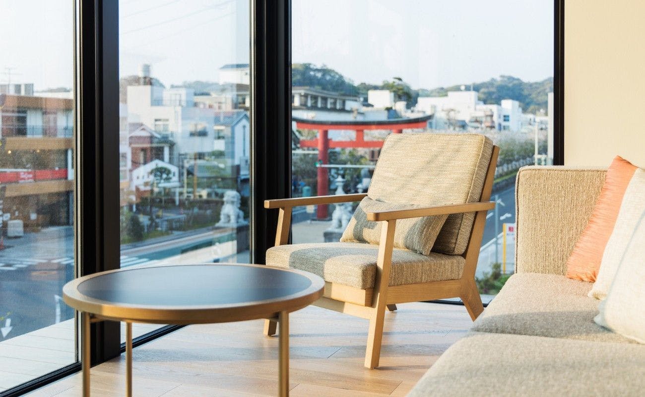 足元まである大きな窓からは鶴岡八幡宮二の鳥居を眺められ、鎌倉らしい景色をご覧いただける角部屋です。