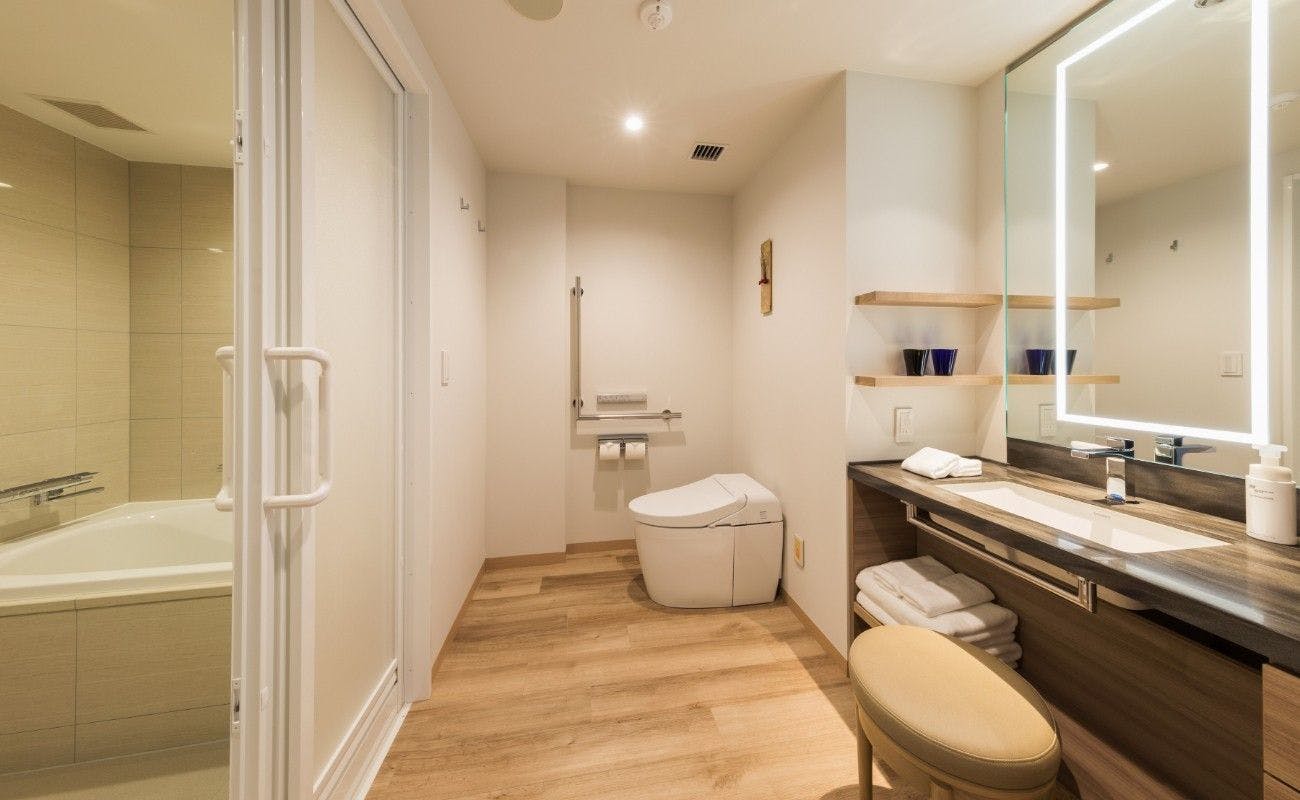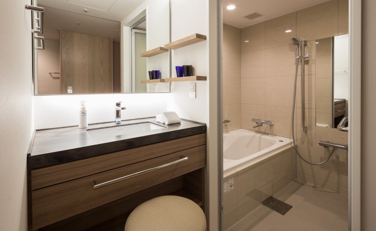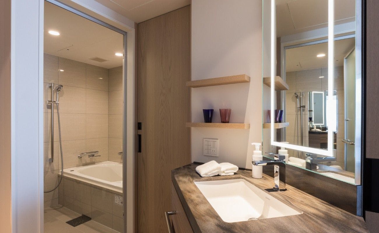 バスエリアにはお2人同時にご利用いただけるダブルベーシンと、