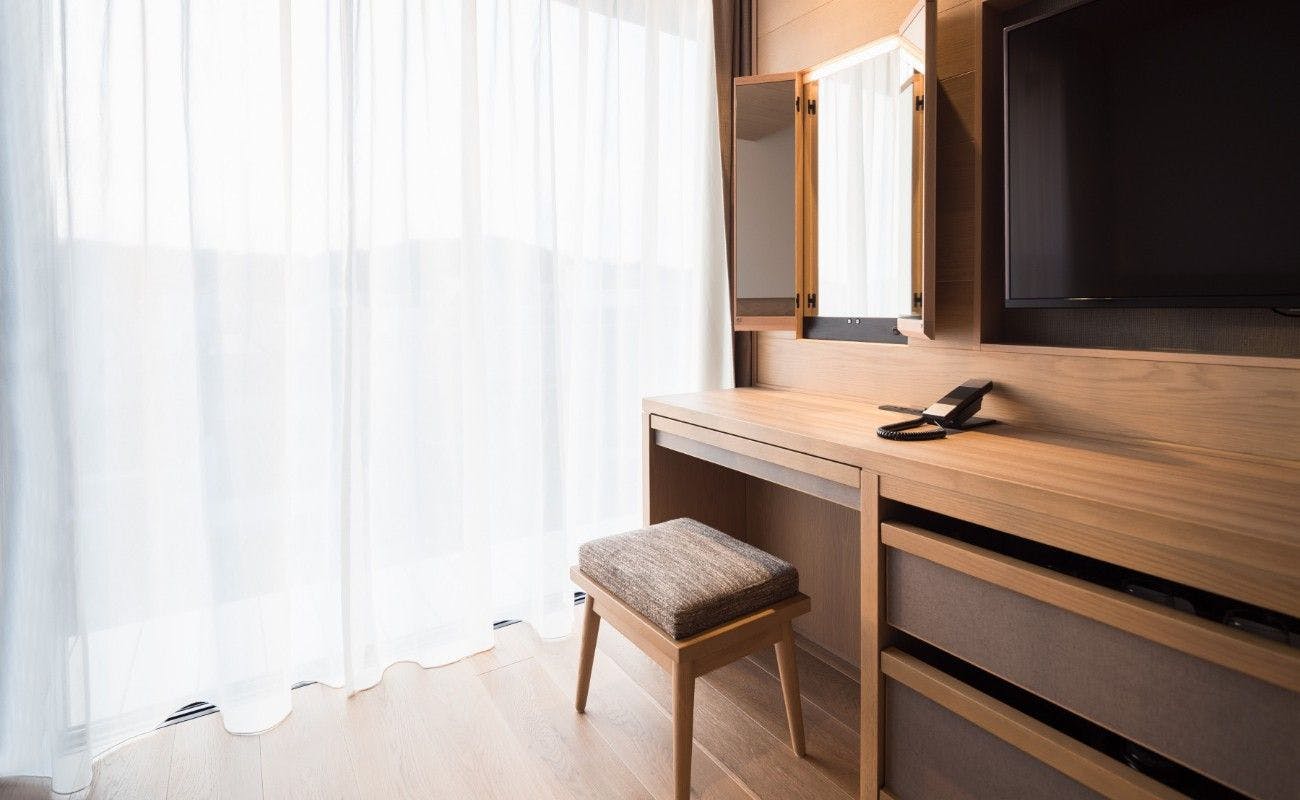 身支度に便利な三面鏡付きのデスクをご用意します。
