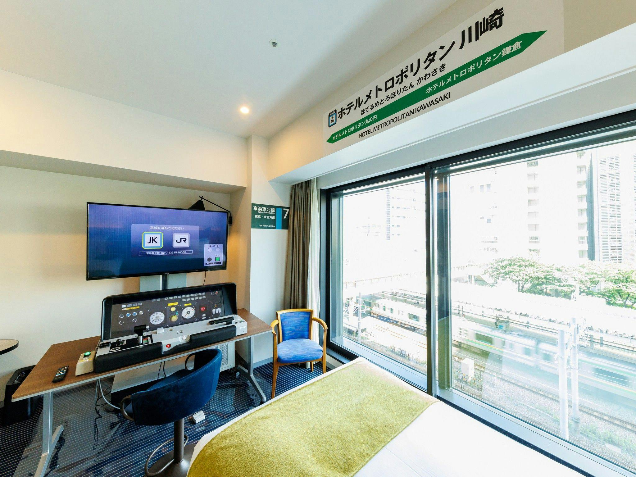 2面に広がる大きな窓からは、川崎の街並みや駅・線路などのパノラマ眺望をご覧いただけます。