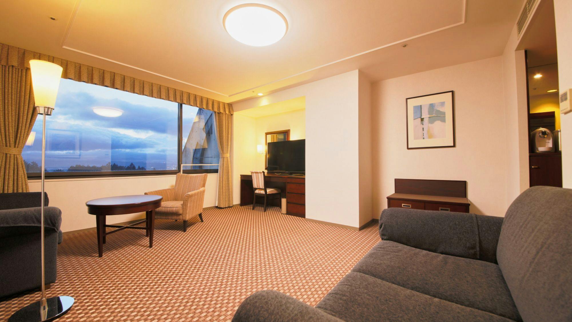 ・お部屋からの眺望は、明け方より富士山を夕方からは御殿場市の夜景をご覧いただけます。