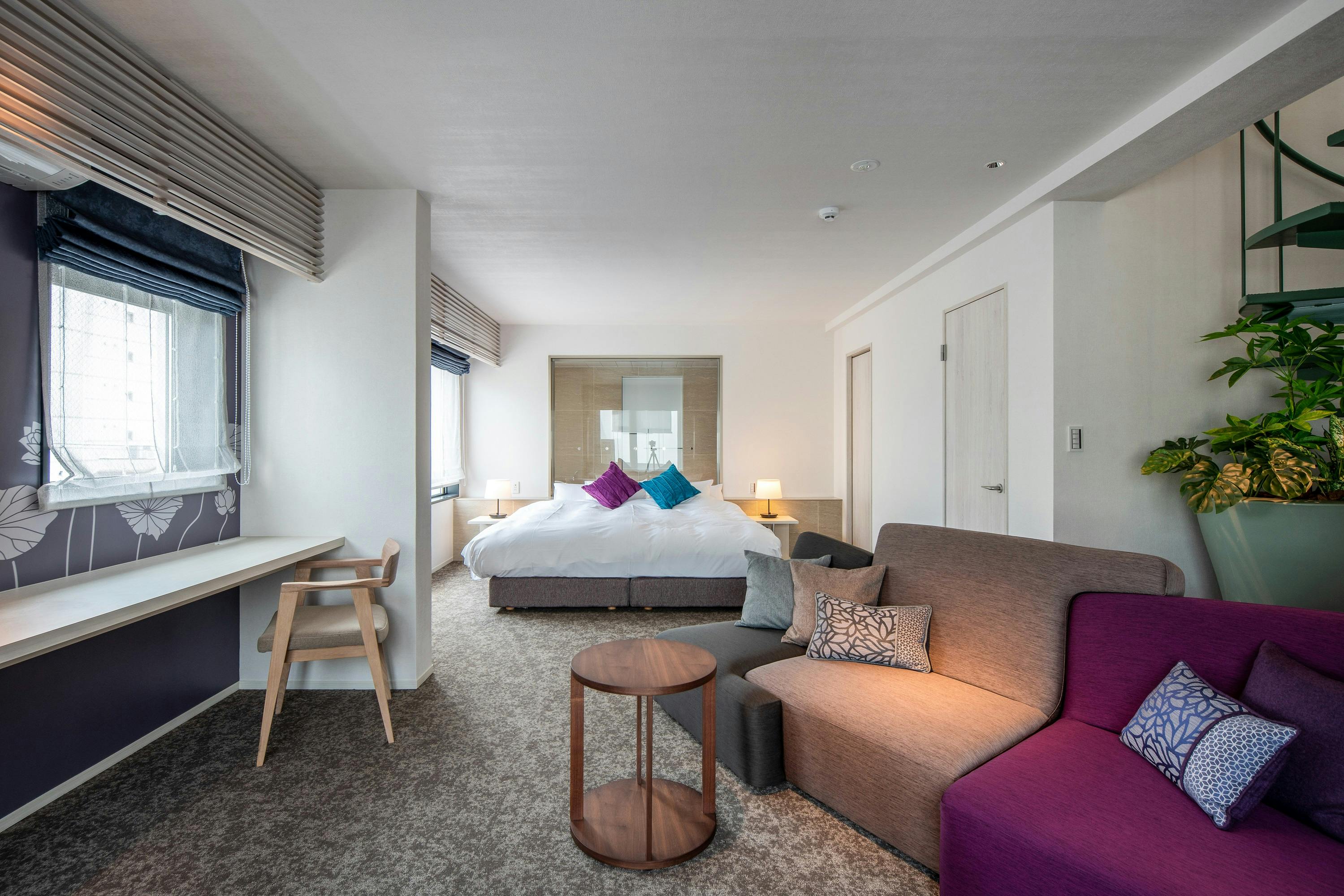La Violaは京都市の中心である烏丸・河原町エリアにほど近い四条大宮に位置し、全12室のモダンな設えと24時間ご利用可能なバーラウンジで、上質かつプライベートなひとときをお約束致します。
