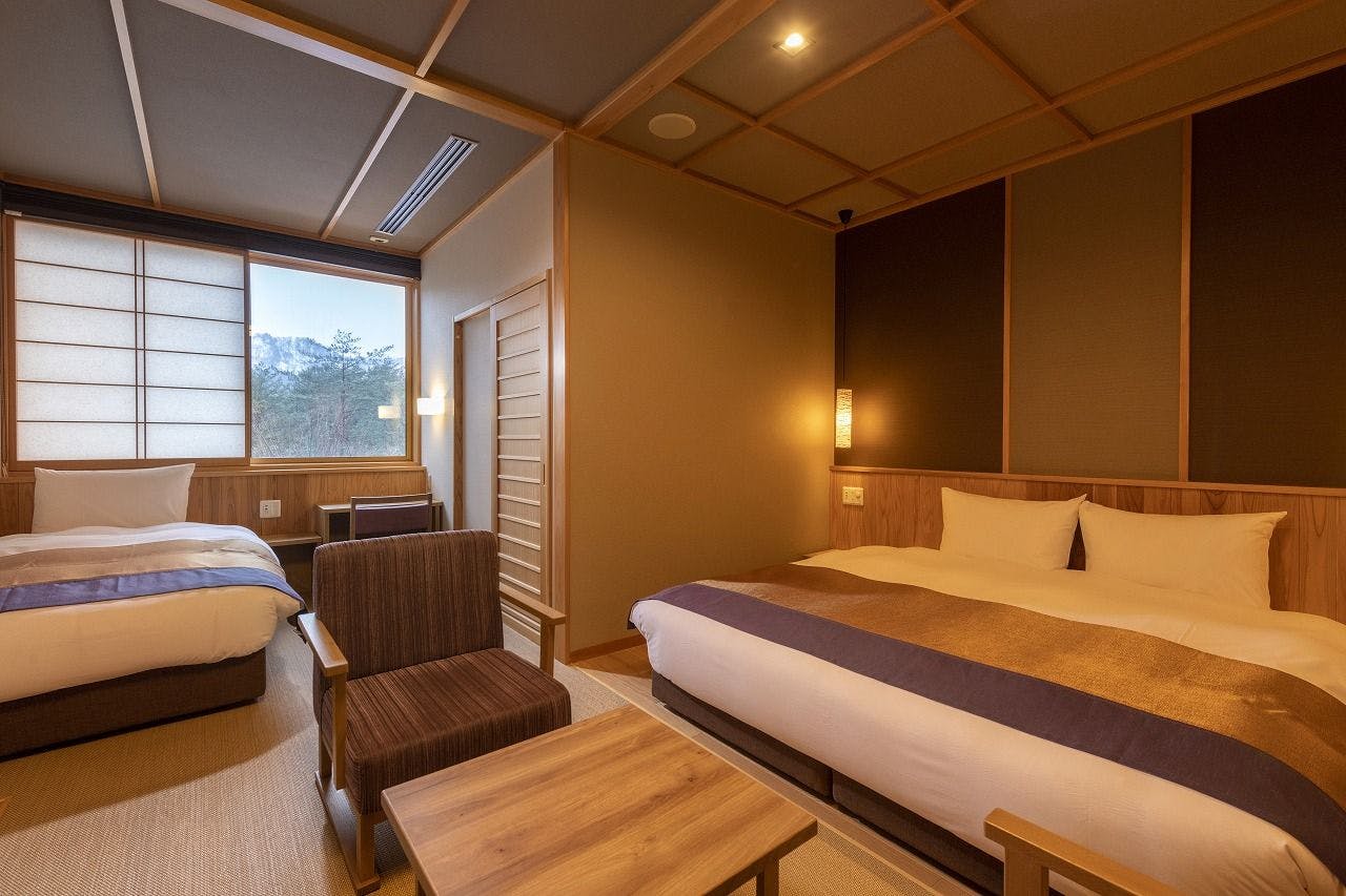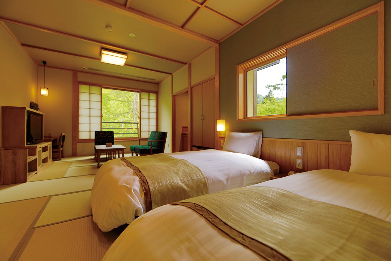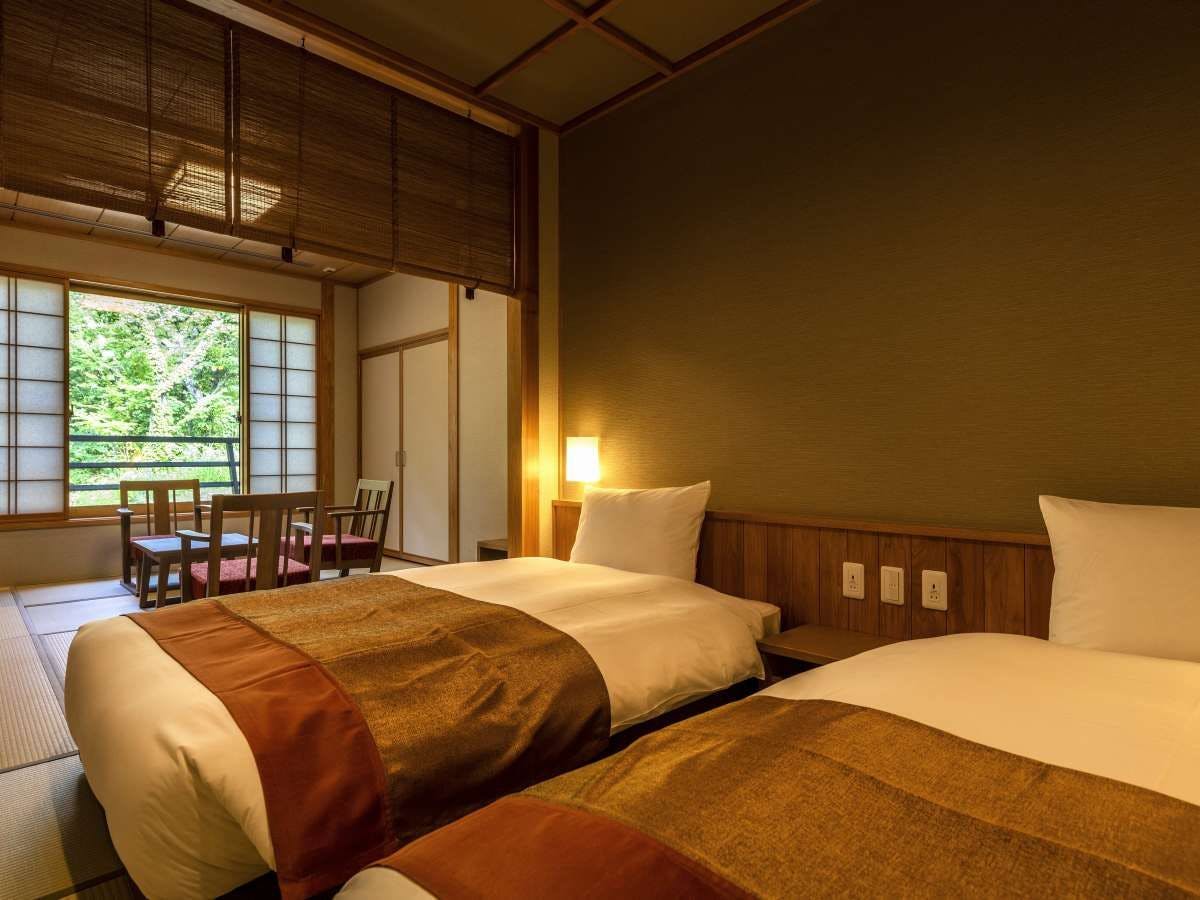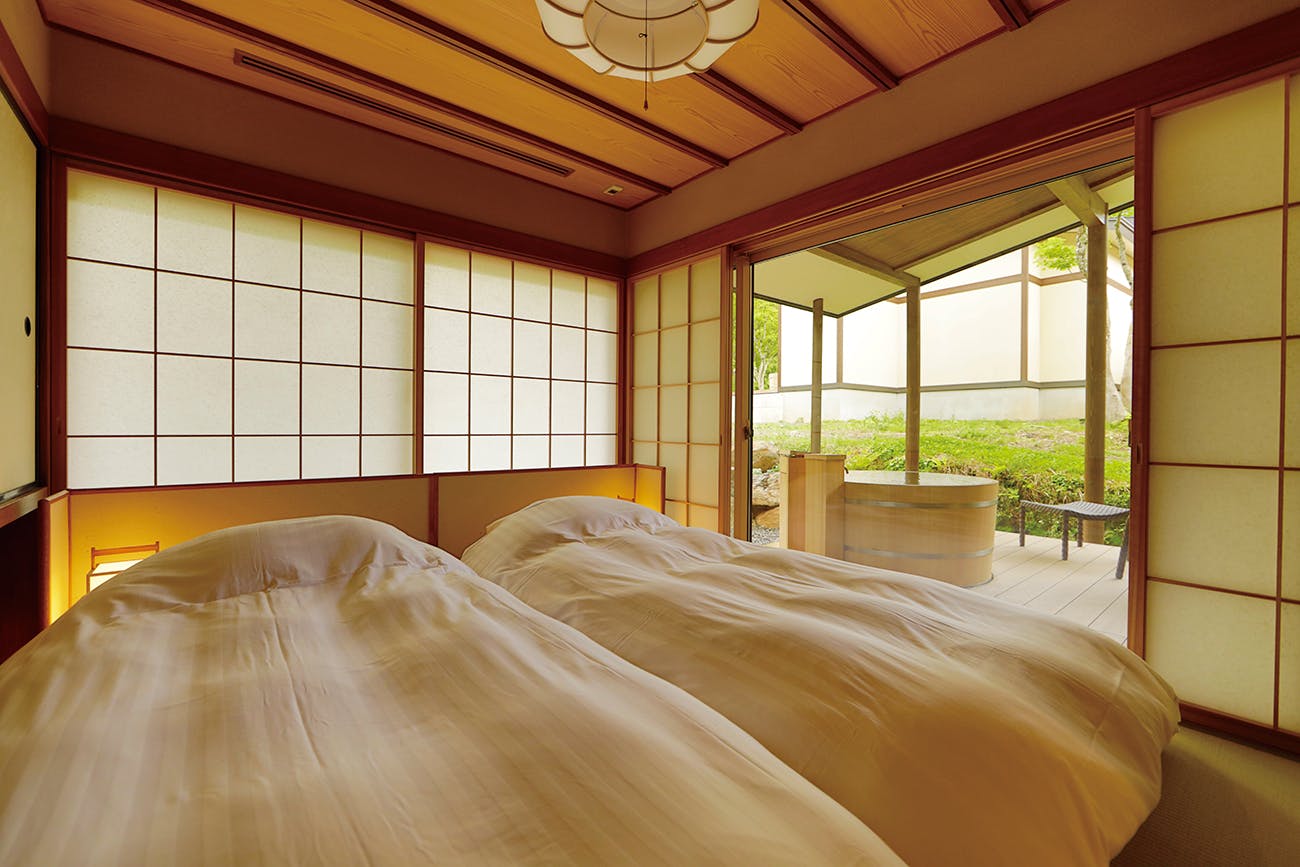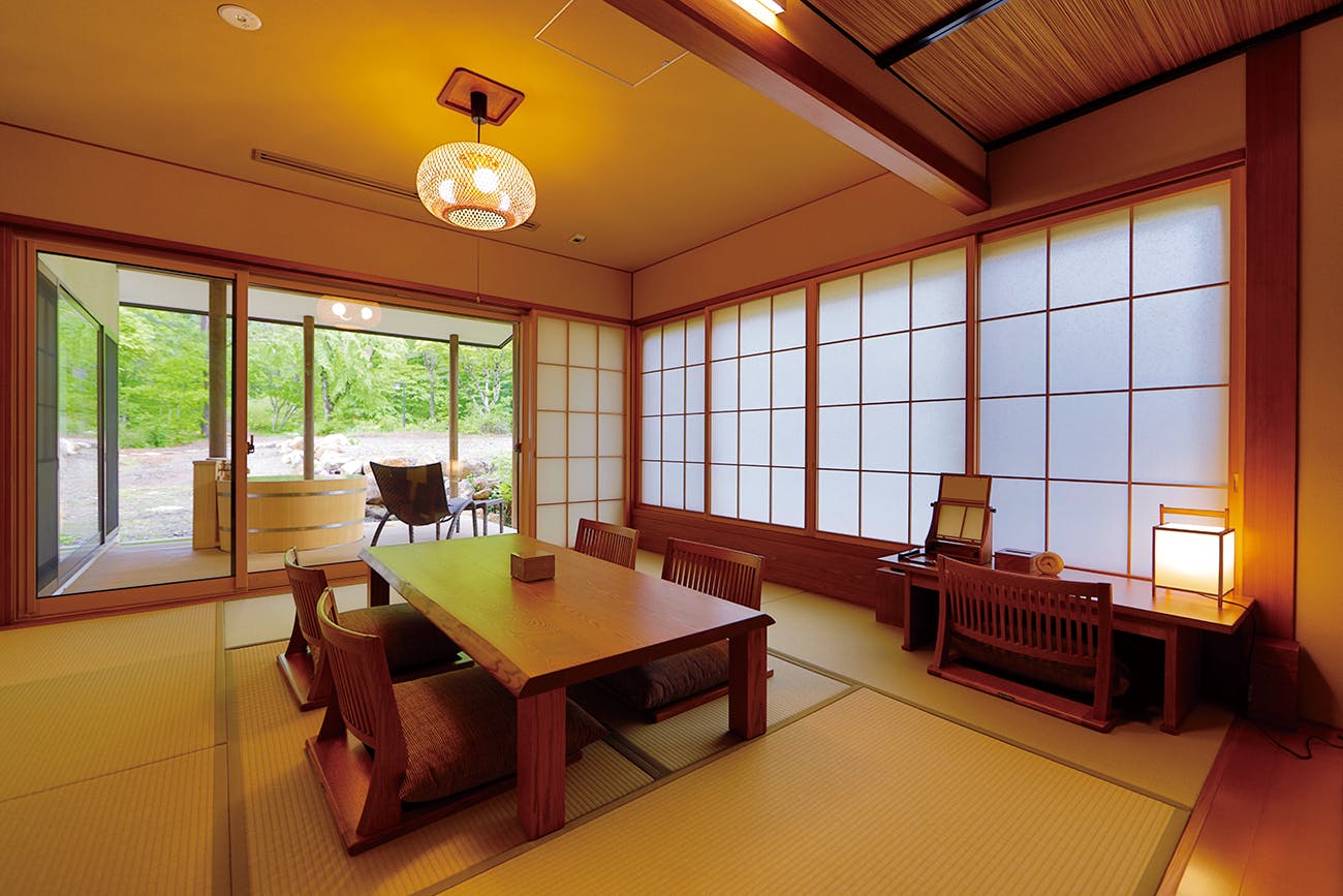 この地に縁ある著名な建築家の設計を元にした当館で最上級であり設えの異なる4種の客室。
